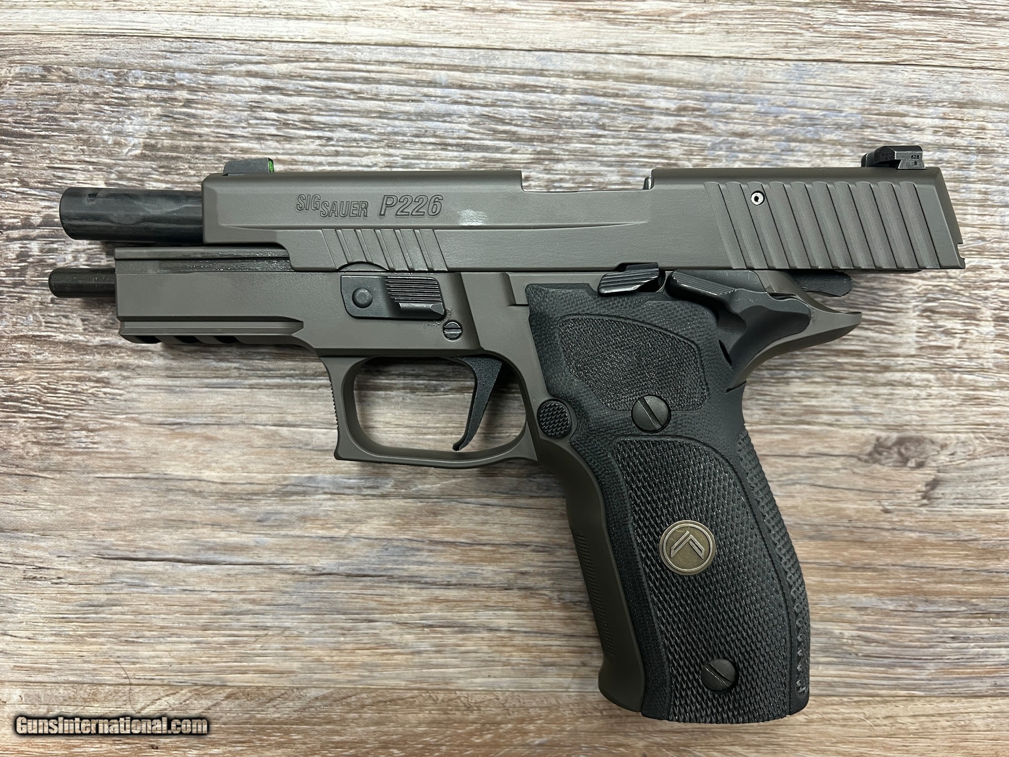 Description: Guns Listing ID: 928602 This single action only pistol has a 4.25in barrel with a tactical rail and an ambidextrous safety. It comes with night sights and three 15rd magazines and one 20rd magazine. Original box and Legion soft case included. SOLD Manufacturer: SIG SAUER Model: P226 LEGION 9MM W/ NIGHT SIGHTS Caliber Info: 9MM LUGER (9X19 PARA) Condition: Used - Non-Certified Barrels: 4.25 BARREL Finish: GREEN |