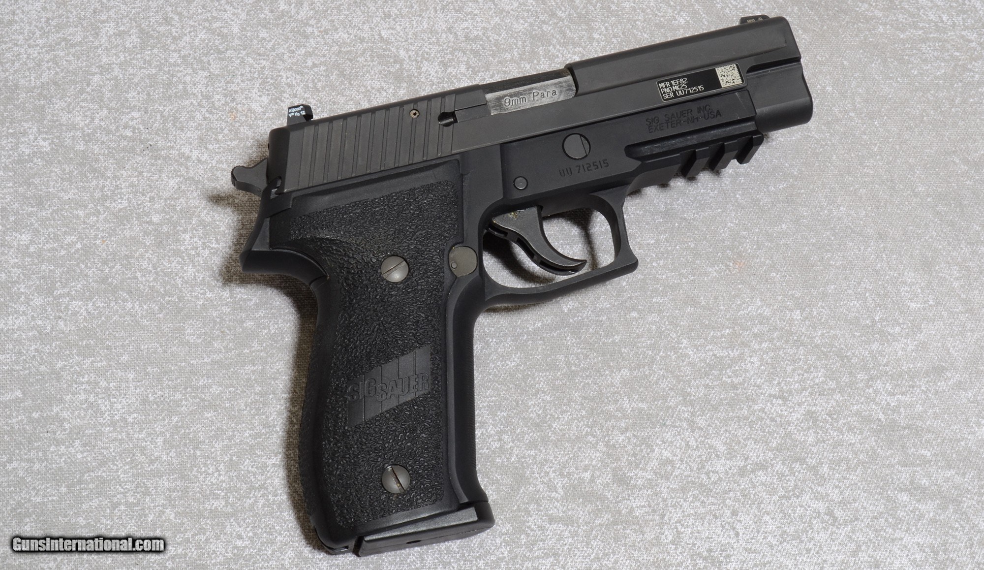 Description: The SIG SAUER P226 is the pistol that set the standard by which all other combat handguns are measured. The exceptional ergonomics and balance make this full size pistol easy to handle. Its longer barrel yields better ballistic performance and accuracy. The P226 is the pistol carried by the U.S. Navy SEALs, the fleet's special warfare operators. The railed P226 chambered in 9mm and engraved with an anchor on the left side of the slide is the official sidearm of the SEALs. 9mm Luger SOLD Chambers: Semi-Auto Metal Condition: Good Condition Barrels: 4 3/8 Inch Barrel Triggers: Factory Weight: 2 lbs Sights: Tritium Front Sight With Fixed Trijicon Notched Rear Sight Item Location: Tulalip, WA |