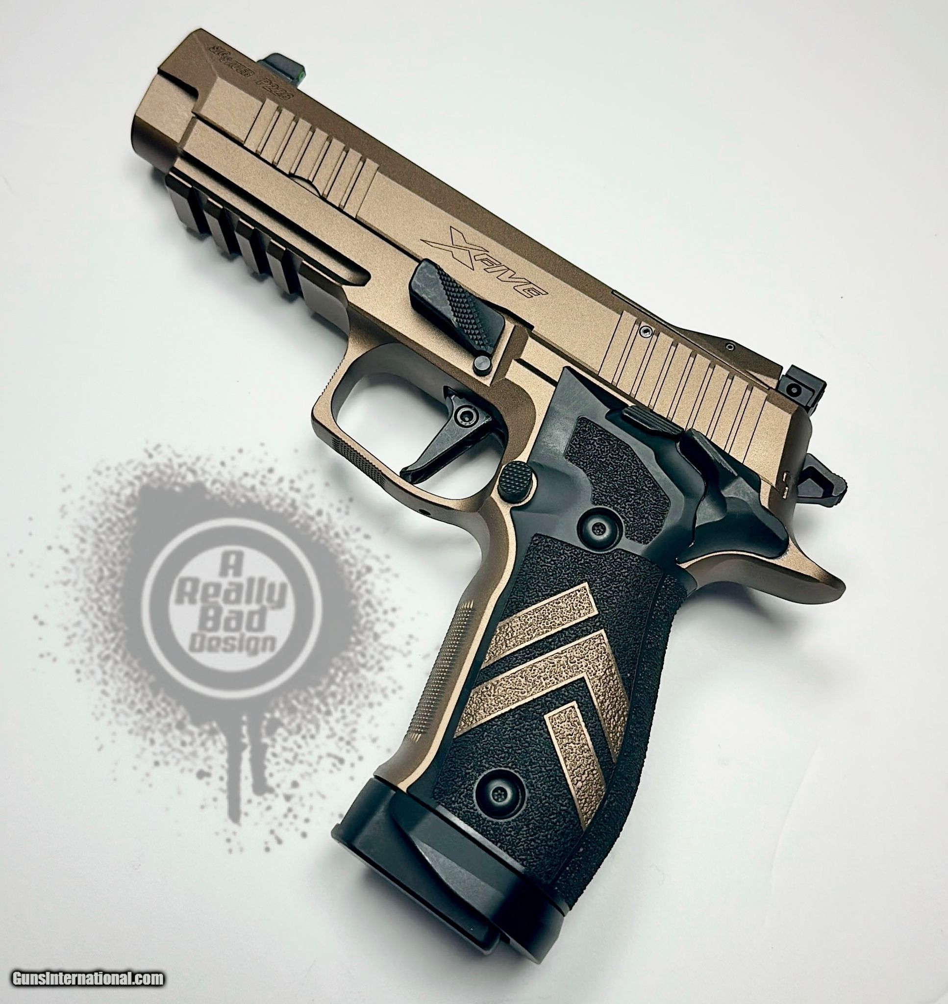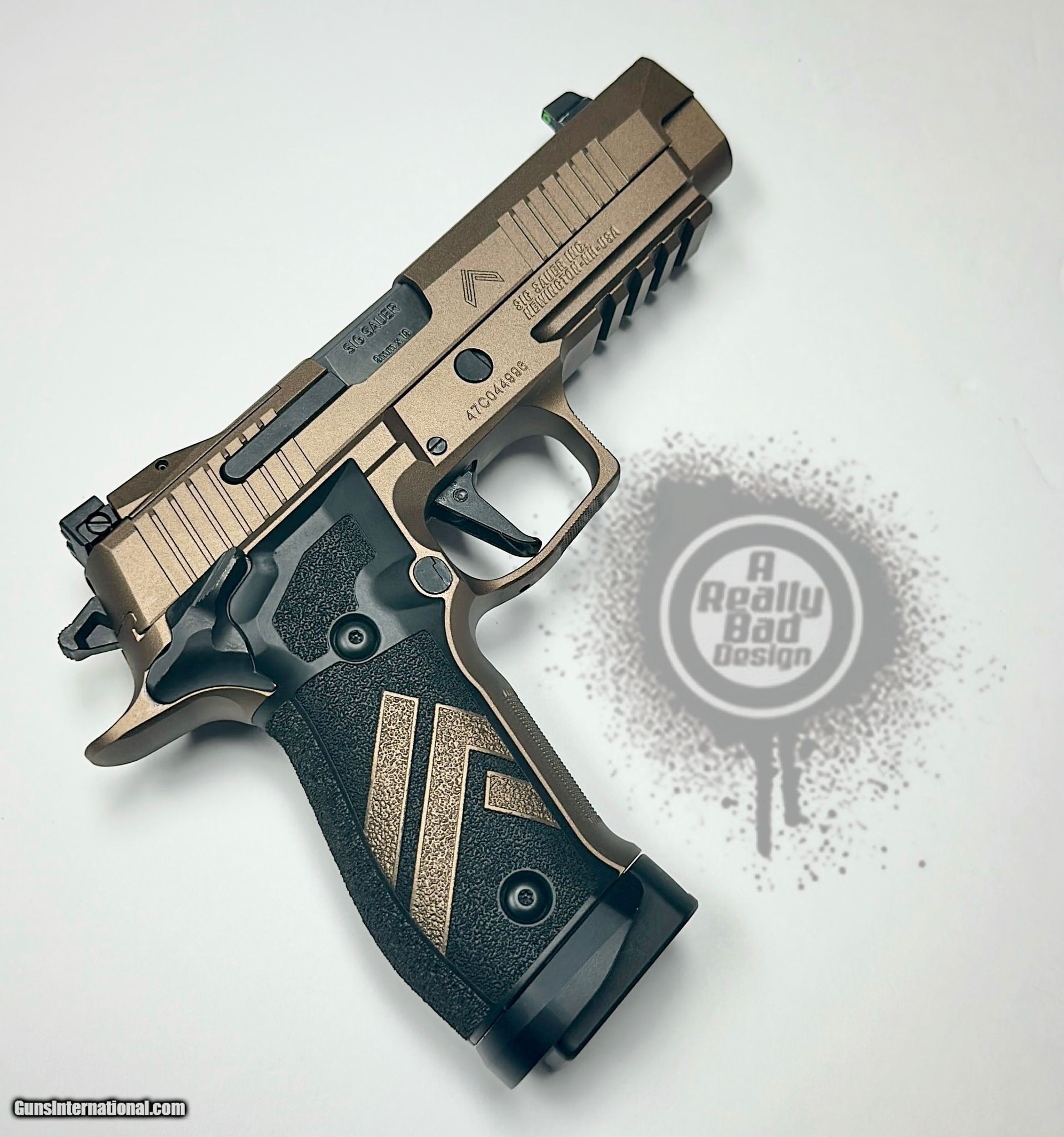 Description: Guns Listing ID: 1212216 This is a factory NEW, Never-Fired Gun. Our sister company, A Really Bad Design, is Certified by Cerakote(tm), they took the looks of this gun to another level. Pistol, Sig Sauer, P226 XFive Legion, Semi-Auto, 9mm, 5\" Barrel, 3 Magazines of 20 Rounds - OR, Comp, Custom Hazel FX by A Really Bad Design SOLD Manufacturer: SIG SAUER Model: P226 XFIVE LEGION Caliber Info: 9MM LUGER (9X19 PARA) Condition: Used - Non-Certified Barrels: 5 BARREL Finish: CUSTOM |