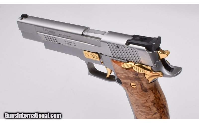 Description: High condition German production, Sig Mastershop P226 S. All stainless construction with 6 Inch barrel, tuned single action trigger. Excellent piece shows only a couple of light handling rubs and scratches. Includes factory box with manual, test target and extra magazine. 9mm Luger SOLD Metal Condition: "Stainless, Gold Trim Wood Condition: Birch panels Bore Condition: "Bright, Sharp Barrels: 6 Inch Triggers: SAO Weight: 48 oz. Sights: "Adjustable rear sight, Dovetailed front Item Location: Buda, TX |