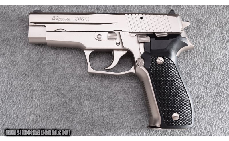 Description: This West German manufactured Sig Sauer Model P226 was manufactured in 1991 and remains in excellent overall condition showing very little use. Gun retains original nickel finish and is as clean on the inside as it is outside. Gun has original Sig cardboard box, manual, original factory target, three 15 round mags and one 32 round magazine (4 Total). Very nice gun! 9mm Parabellum SOLD Metal Condition: Excellent Bore Condition: Excellent Barrels: 4 1/4 Triggers: Factory Butt Pad: Checkered Black Synthetic Grips Weight: 32 oz. Sights: White Front Dot - Rear White Bar Combat Night Sights Item Location: Wheeling |