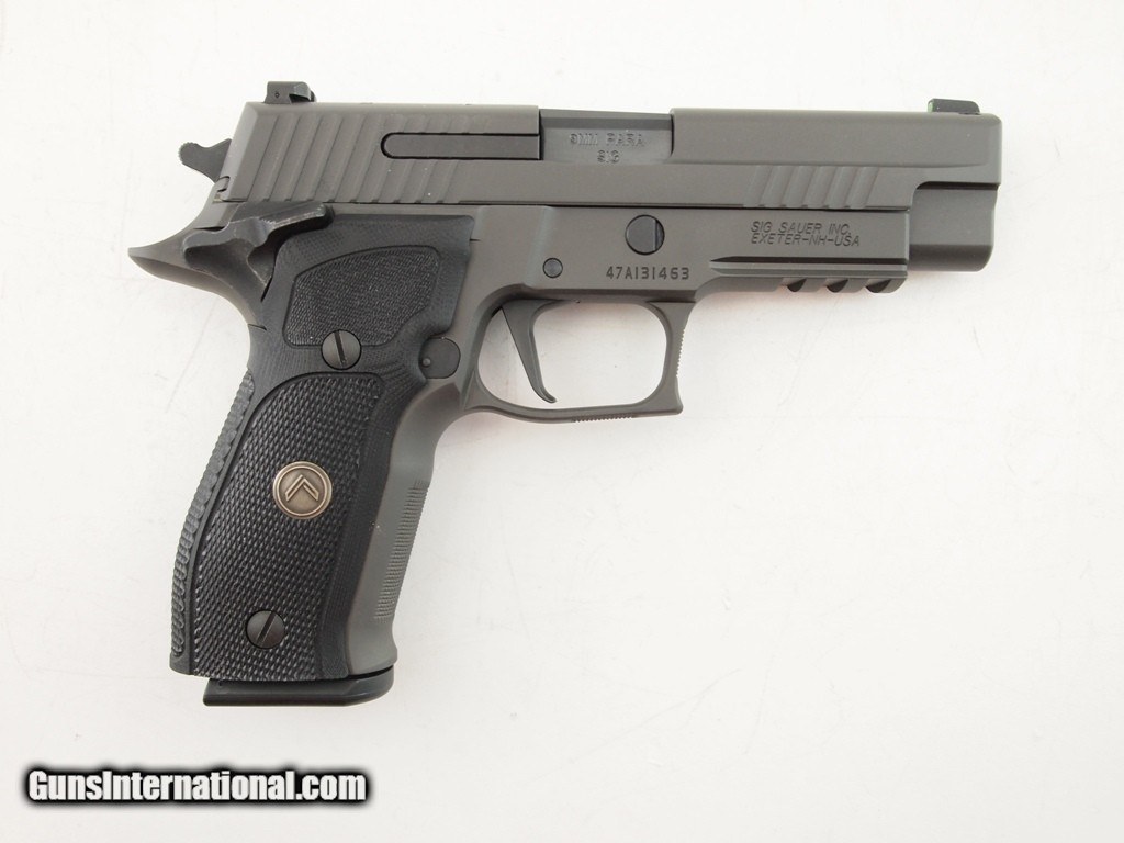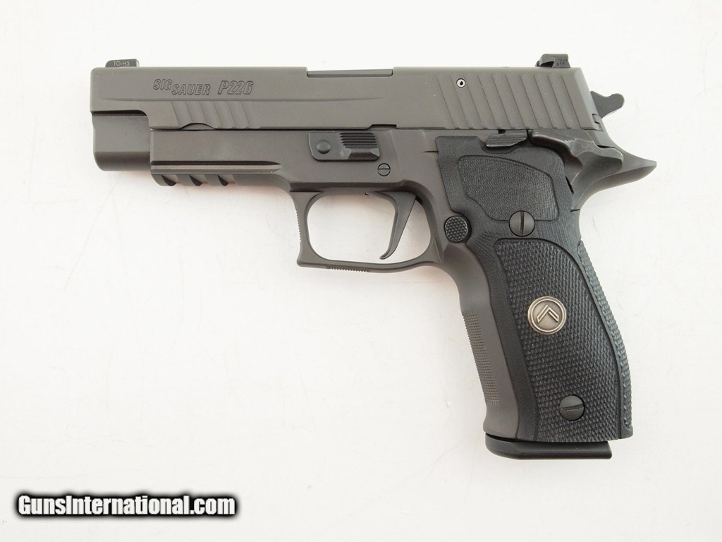Description: SigSauer P226 Legion SAO 9MM WCase, 4 1/4" BBL, night sights, dark grey finish, checkered front strap, one 18 round magazine, and checkered black grips with inset Legion medallions. Add 3% for Credit Card Shipping $25.00 SOLD |