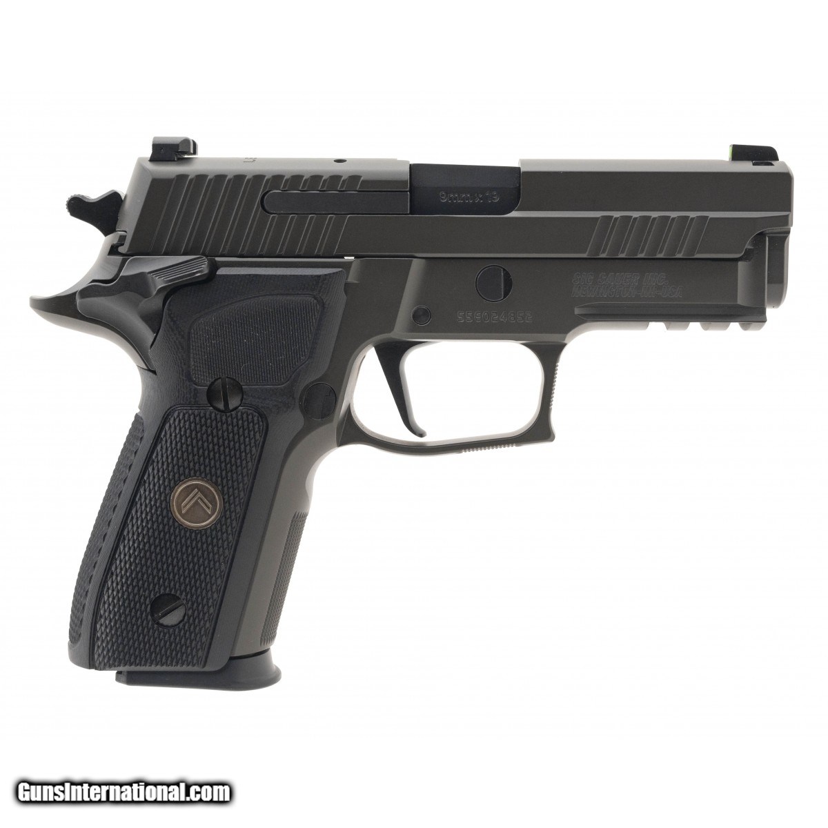 SN: 55E024852. Compact SAO Legion model with 3.9"" barrel, flat-faced SAO trigger, Sig XRAY3 night sights, ambidextrous safety and alloy frame in ""Legion Gray"" finish. Overall excellent condition. Comes with box, Legion case, extra magazine and challenge coin.