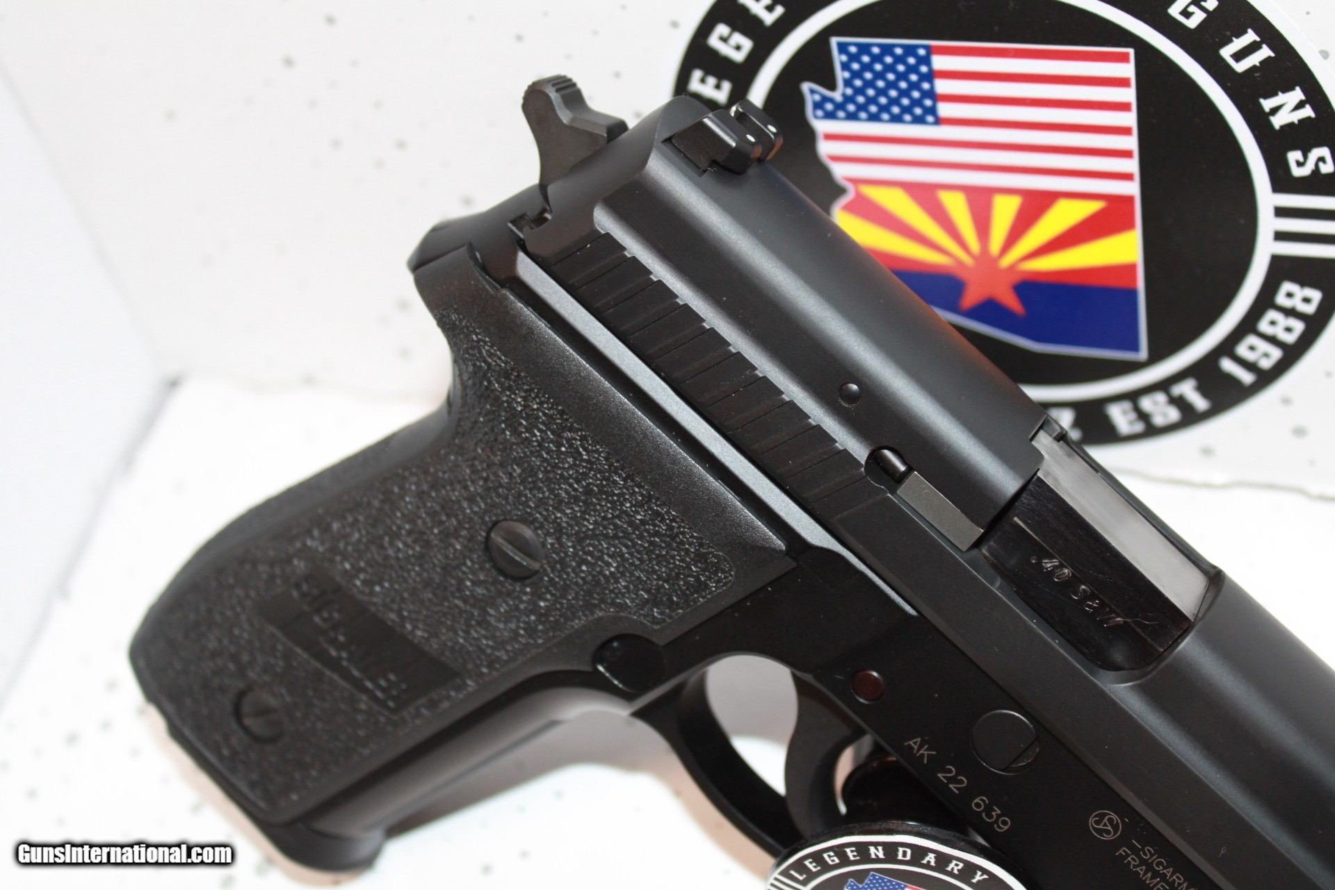 Description: Sig P229 in 40, blued finish. Comes with box and 2 mags. OVerall pistol is in very good condition, night sights are burnt out. *Legendary Guns in Phoenix AZ 602-242-1195 Hours of operation Tuesday-Friday 10-6 Sat 10-5 Closed Sundays & Mondays *We accept all Major credit cards. We DO NOT charge an additional fee for Credit Cards. We also accept Postal Money orders or Certified Bank Checks{Check & Money order payments must arrive within 7 days of initial agreement and will be held for 3 days before items are shipped} *Shipping is $50 for rifles/shotguns {AK & HI Extra} and $35 for handguns. Arizona Residents Must Pay Sales Tax. We DO NOT ship Internationally. *We offer a 60 day layaway on purchases of $500 or more. Items require 1/3 of the total price as down payment which is NON-REFUNDABLE and you have 60 days to pay off the balance. *Please call or email with any questions and to confirm availability before buying. We are happy to answer all questions. All items listed are also for sale at our Phoenix, AZ location *We offer a 3 day inspection period on USED FIREARMS ONLY, We accept returns within the 3 day inspection period with NO REFUNDS ON SHIPPING CHARGES and a 10% restocking fee. *Trades are welcome for customers who can visit our Phoenix, AZ location, We DO NOT engage in online or mail in trades. SOLD Manufacturer: Sig Condition: Used |