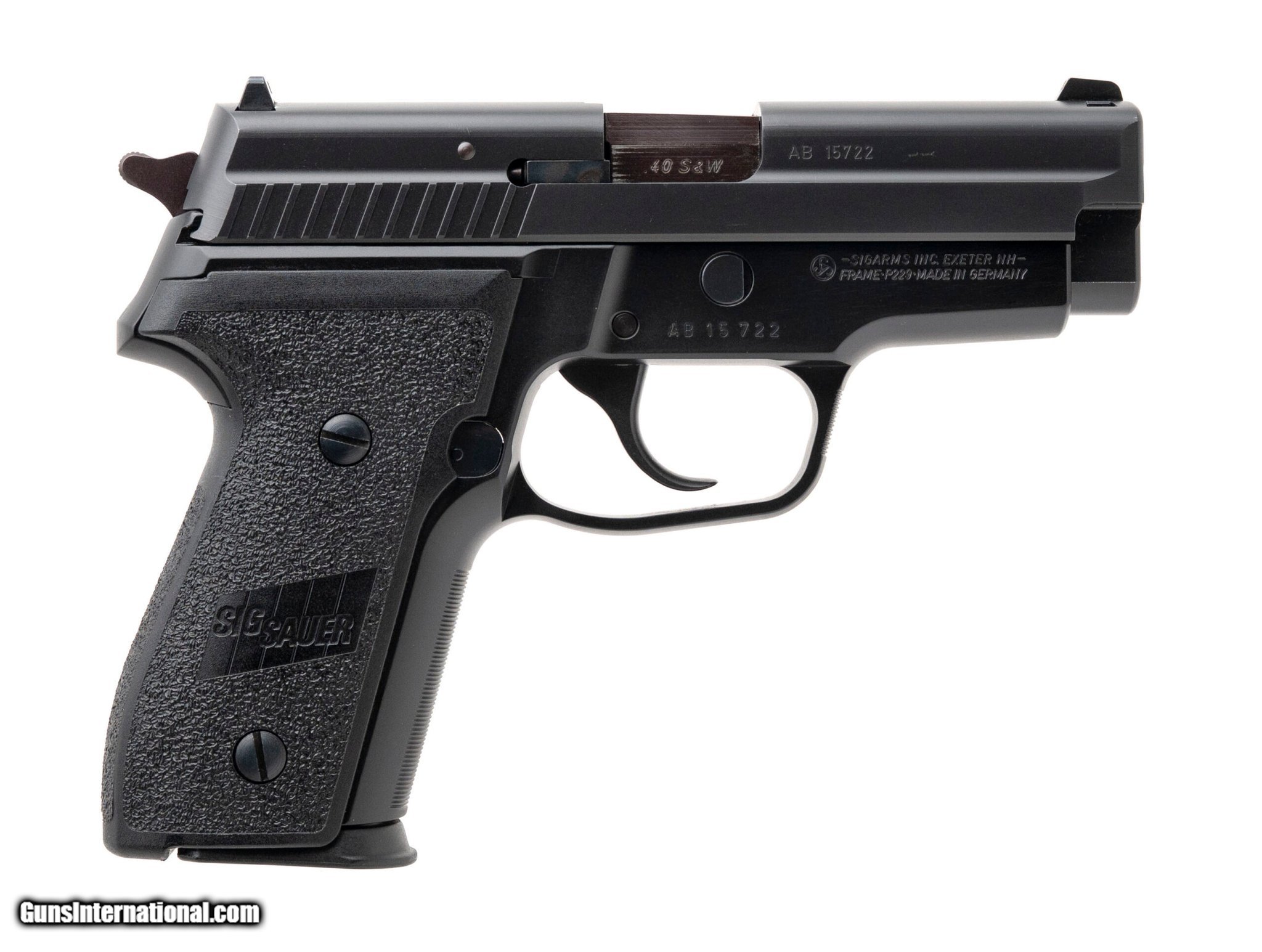Description: Guns Listing ID: 528409 SN: AB15722. Made in 1993, .40 S&W with a 4\" barrel. Bore is excellent. Semi-auto hammer fired pistol with decocker, matte finish, and plastic grips. Minor handling wear to finish. Includes original box and additional magazine. Overall condition is very good. (PR73683) SOLD Manufacturer: SIG SAUER Model: P229 Caliber Info: .40 S&W Condition: Used - Non-Certified Barrels: 4 Action: SEMI AUTOMATIC Finish: black |