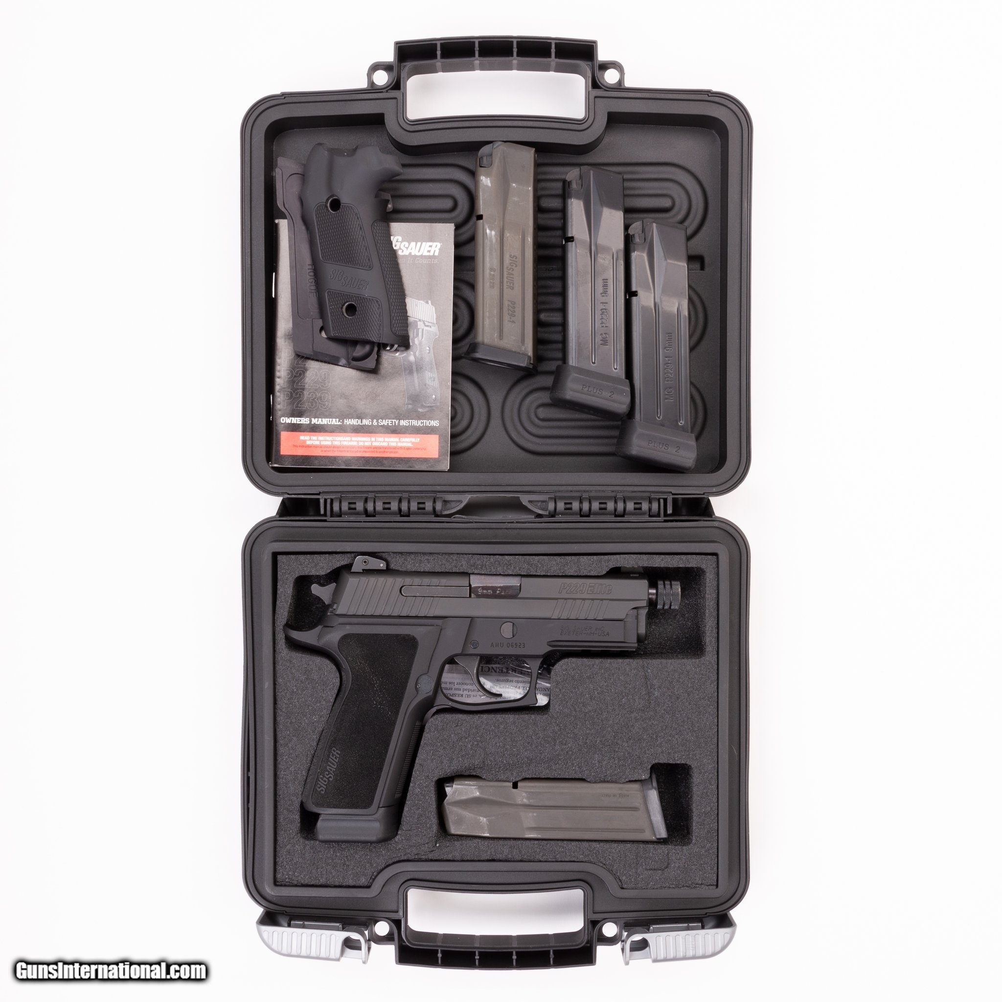Description: Guns Listing ID: 459243 This P229 Elite handgun features five 15-round magazines, the original case, extra grips and a threaded barrel. Get the best bang for your buck when you get a Certified Used Firearm . When you see the Certified Used stamp on any of our firearms, you can be confident that you’re getting exactly what you want – a gun only in very good to excellent condition and held to the highest quality standard. All Certified Used Guns come with a ‘no questions asked’ return policy . PLUS, ALL CERTIFIED USED GUNS SHIP FREE! SOLD Manufacturer: SIG SAUER Model: P229 ELITE Caliber Info: 9MM LUGER (9x19 PARA) Condition: Used - Certified Barrels: 4.50 Action: SEMI AUTOMATIC Finish: BLACK Weight: 2 |