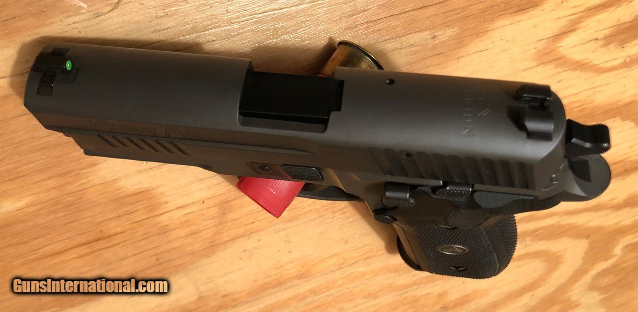 Description: Gun features a DA/SA trigger with low profile decocking and slide lock levers. It has a Grayguns P-SAIT trigger with short reset, X-RAY 3 night sights, accessory rail, stainless steel guide rod, gray PVD finish, front and rear cocking serrations, front and bottom trigger guard checkering, front grip checkering, black Legion grips with logo, medium beavertail, and Legion Logo engraved on top of slide – all Sig factory features. It also comes with its original molded plastic case, a safety lock, the Legion soft case with three 12-round magazines, the Sig Legion coin, and all factory paperwork. Barrel length: 3.9” Sight radius: 5.7” Overall length: 7.4” Overall height: 5.4” Overall width: 1.5” Weight w/Mag: 34.4 oz. This Legion model has been discontinued and is hard to find in new condition. Please make sure this is legal in your state BEFORE you buy. Check your local laws before buying. $2395 including shipping and insurance. FFL required. SOLD |