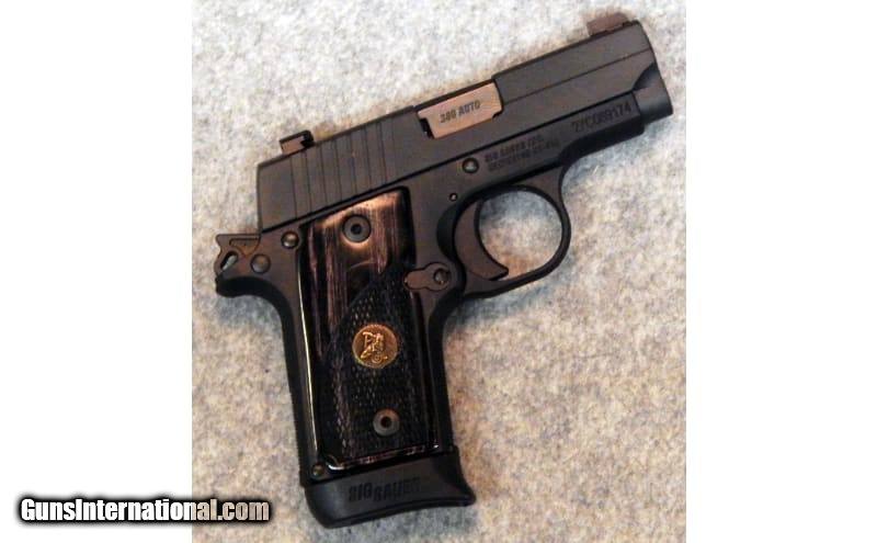 Description: SIG Sauer ~ P238 ~ Chambered in .380 ACP. Is a micro compact concealed carry handgun, with a single action trigger this hammer fire firearm draw heavy inspiration from the much larger 1911. Features a 2.75" barrel paired with iron sights. Anodized black slide and frame are complimented with Pachmayr wood grips. Comes with factory box, and two 6 + 1 capacity magazines. .380 ACP SOLD Chambers: .380 ACP. Metal Condition: Very good condition. Wood Condition: Very good condition. Bore Condition: Good condition. Barrels: 2.75" inches. Weight: 1.25 pounds Sights: Iron sights. Item Location: Acworth, GA |