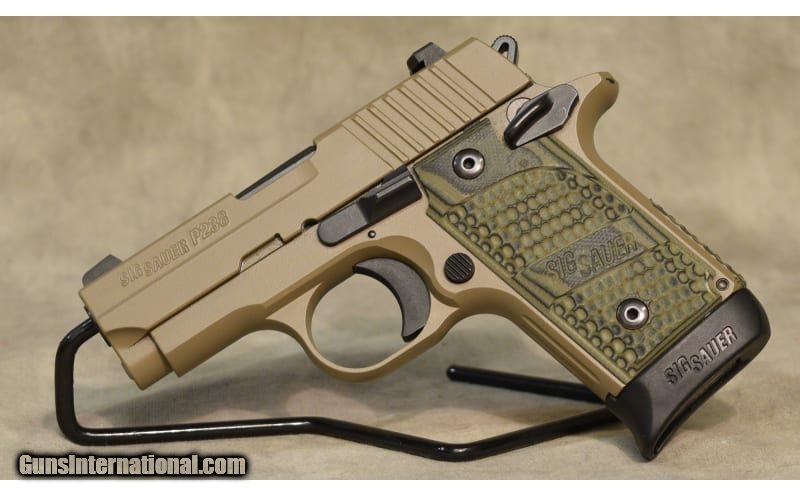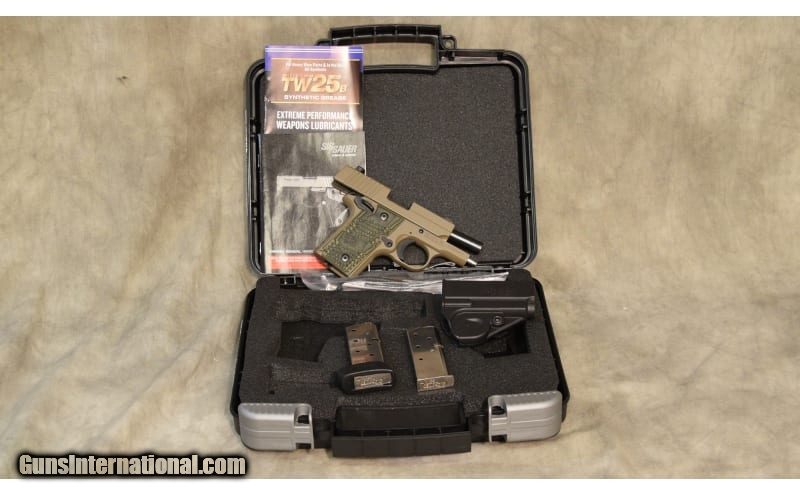 Description: Sig Sauer P238 Scorpion in excellent condition cambered in .380 Auto. Includes one 7 round extended magazine, one 6 round flush magazine, and Sig fitted holster all in the factory case. .380 ACP SOLD Metal Condition: Excellent Bore Condition: Bright Barrels: 2.5 Sights: Factory night sights Item Location: Chesterfield, MI |