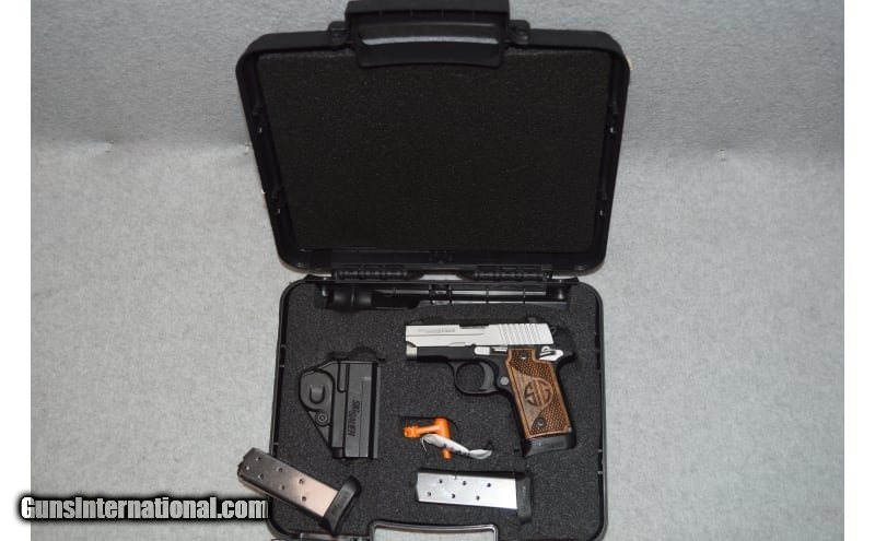 Description: This is a Sig p238 in .380 Auto. This pistol comes with 3 magazines. The capacity is 7. OEM Case. The overall condition is excellent. .380 ACP SOLD Metal Condition: Excellent Wood Condition: Excellent Bore Condition: Excellent Barrels: 2.7 Triggers: Factory Sights: 3 dot sight Item Location: Avon, OH |