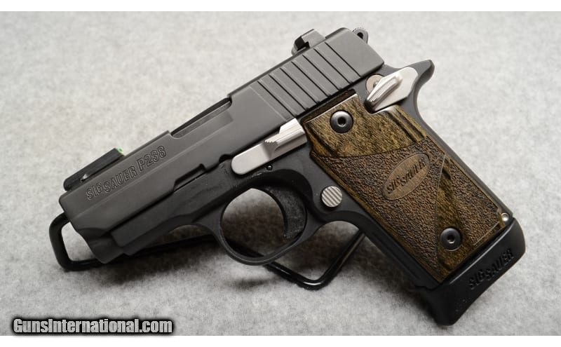 Description: Built with the same accuracy and reliability as large frame SIG SAUER pistols, the P238 chambered in .380 ACP features a SAO trigger, black alloy frame, blackwood grips, ambidextrous thumb safeties, and SIG Lite day/night sights. With an overall length of just 5.5 inches and a height of 3.9 inches, and weighing just under a pound .380 ACP SOLD Metal Condition: Excellent Wood Condition: Excellent Bore Condition: Excellent Barrels: Factory 3 Triggers: Factory Weight: 1 lb Item Location: Columbus, OH |