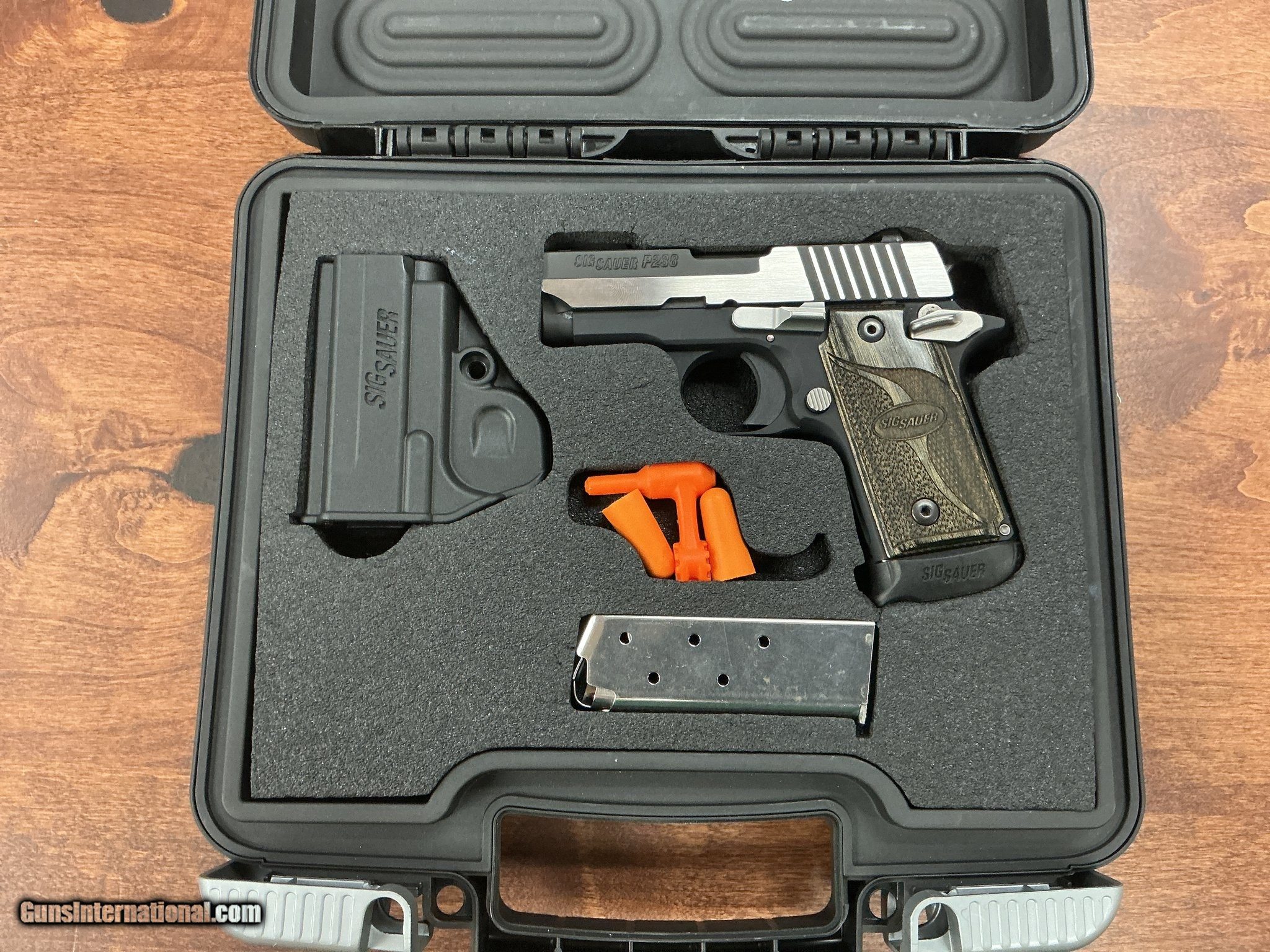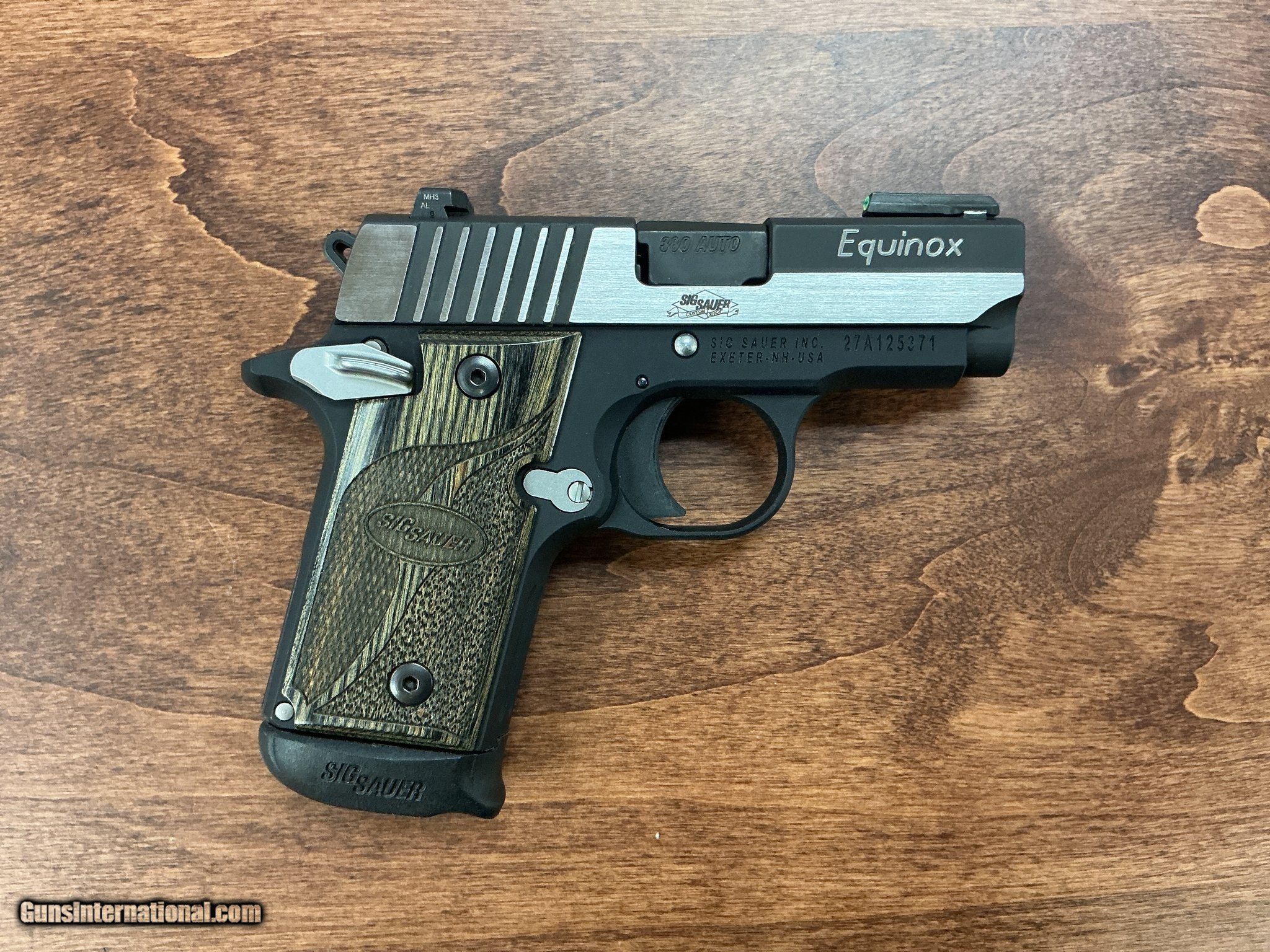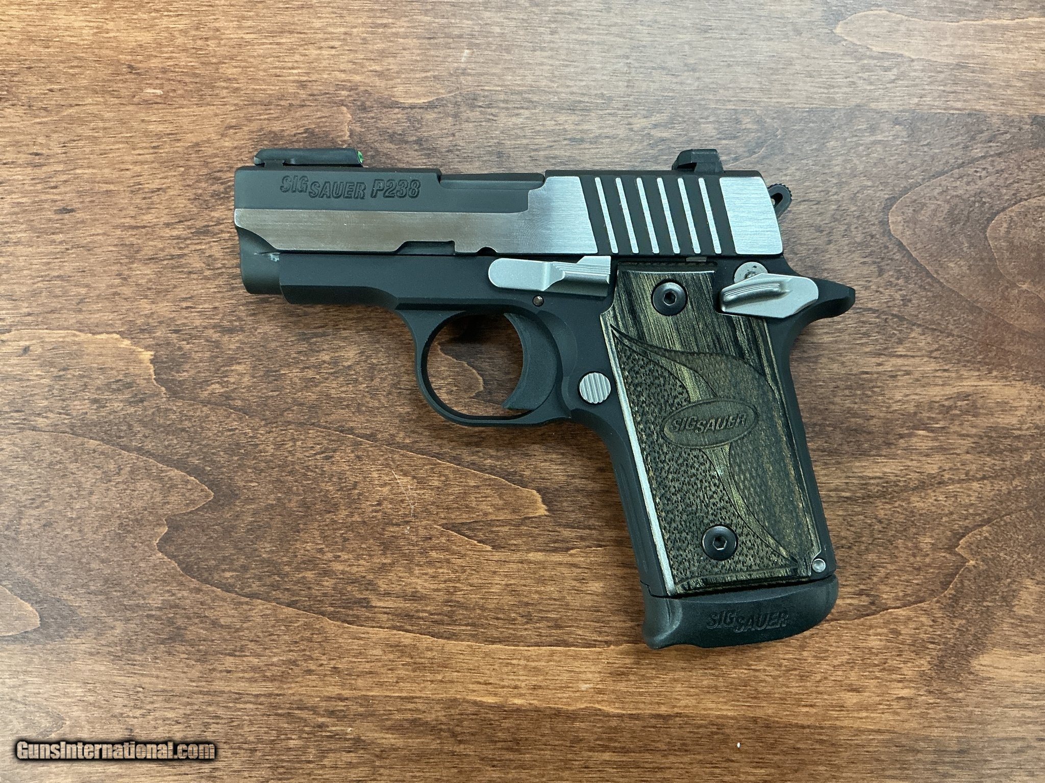 Description: Guns Listing ID: 623062 ## SIG Sauer P238 Equinox – Excellent Condition – Factory Case & Holster **Condition:** Excellent **Manufacturer:** SIG Sauer **Model:** P238 Equinox **Caliber:** .380 ACP **Capacity:** 6+1 **Action:** Single-Action, Semi-Auto Up for sale is a **SIG Sauer P238 Equinox** in excellent condition. The Equinox variant stands out with its distinctive two-tone finish, polished accents, and premium styling, combining refined aesthetics with the proven reliability of the P238 platform. This example shows minimal signs of handling and remains in excellent overall shape. The slide and frame present beautifully, the controls are crisp, and the bore is clean with strong rifling. The single-action trigger offers a smooth pull with a clean break, contributing to the P238’s reputation for accuracy and shootability in a compact .380 platform. Compact and lightweight, the P238 is ideal for concealed carry while still offering metal-frame durability and 1911-inspired ergonomics. The Equinox trim adds a premium touch with its contrasting finish and detailed appointments. Included with the pistol: * (2) 6-round magazines * Factory holster * Original SIG Sauer hard case If you’re looking for a high-quality, compact .380 with distinctive styling and factory accessories included, this SIG P238 Equinox is an excellent option. Manufacturer: SIG SAUER Model: P238 EQUINOX Caliber Info: .380 ACP Condition: Used - Non-Certified Barrels: 2.7" BARREL Action: SEMI AUTOMATIC Finish: two tone Price: $739.99 Contact Seller |