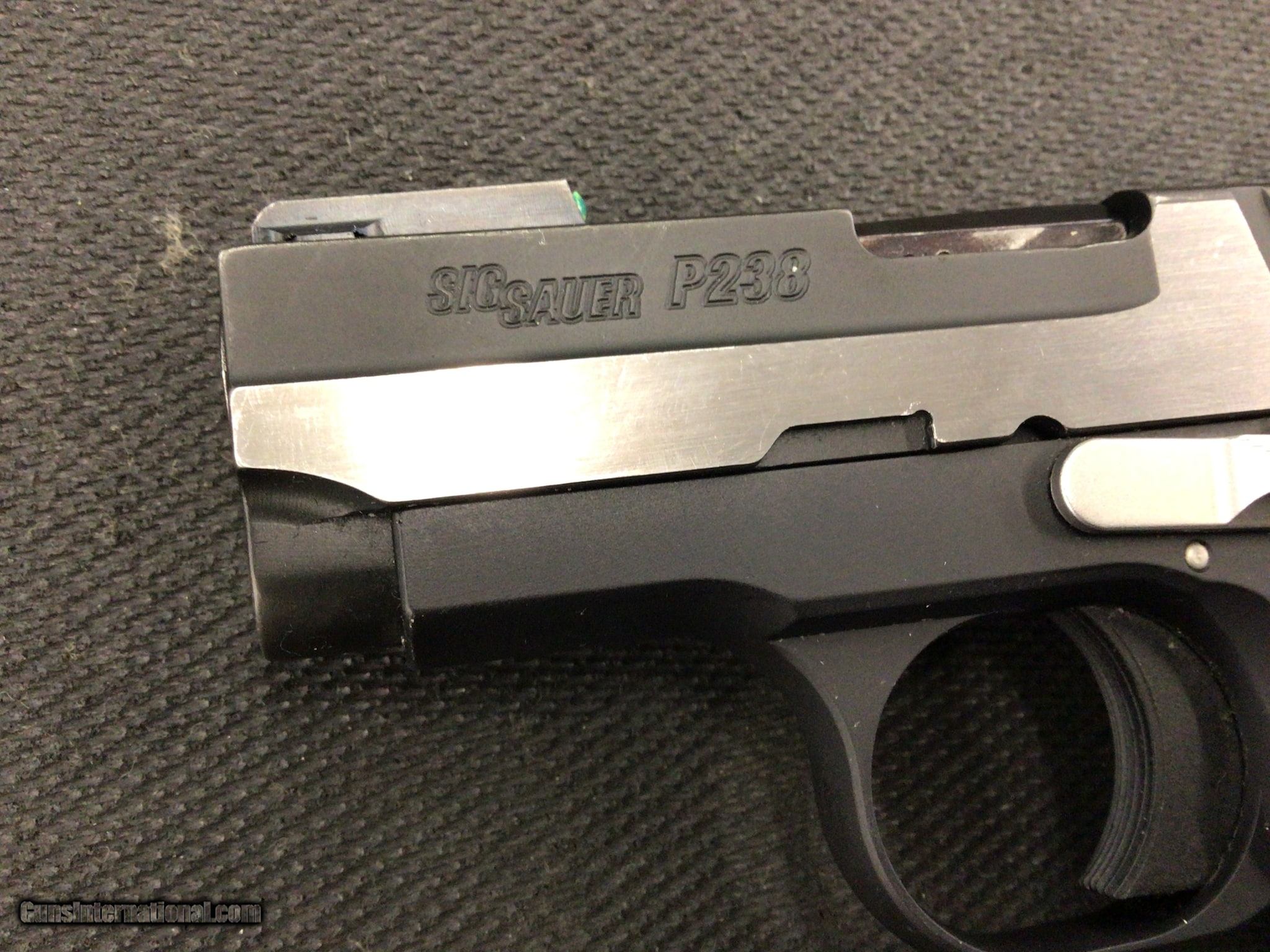 Description: Guns Listing ID: 478764 Nice used Sig Sauer P238 Equinox in 380. Comes in original box with holster and spare magazine. Nice condition, some light scratches and marks but good overall. SOLD Manufacturer: SIG SAUER Model: P238 EQUINOX Caliber Info: 380 ACP Condition: Used - Non-Certified Barrels: 3 BARREL Finish: BLACK /W WOOD STOCK |