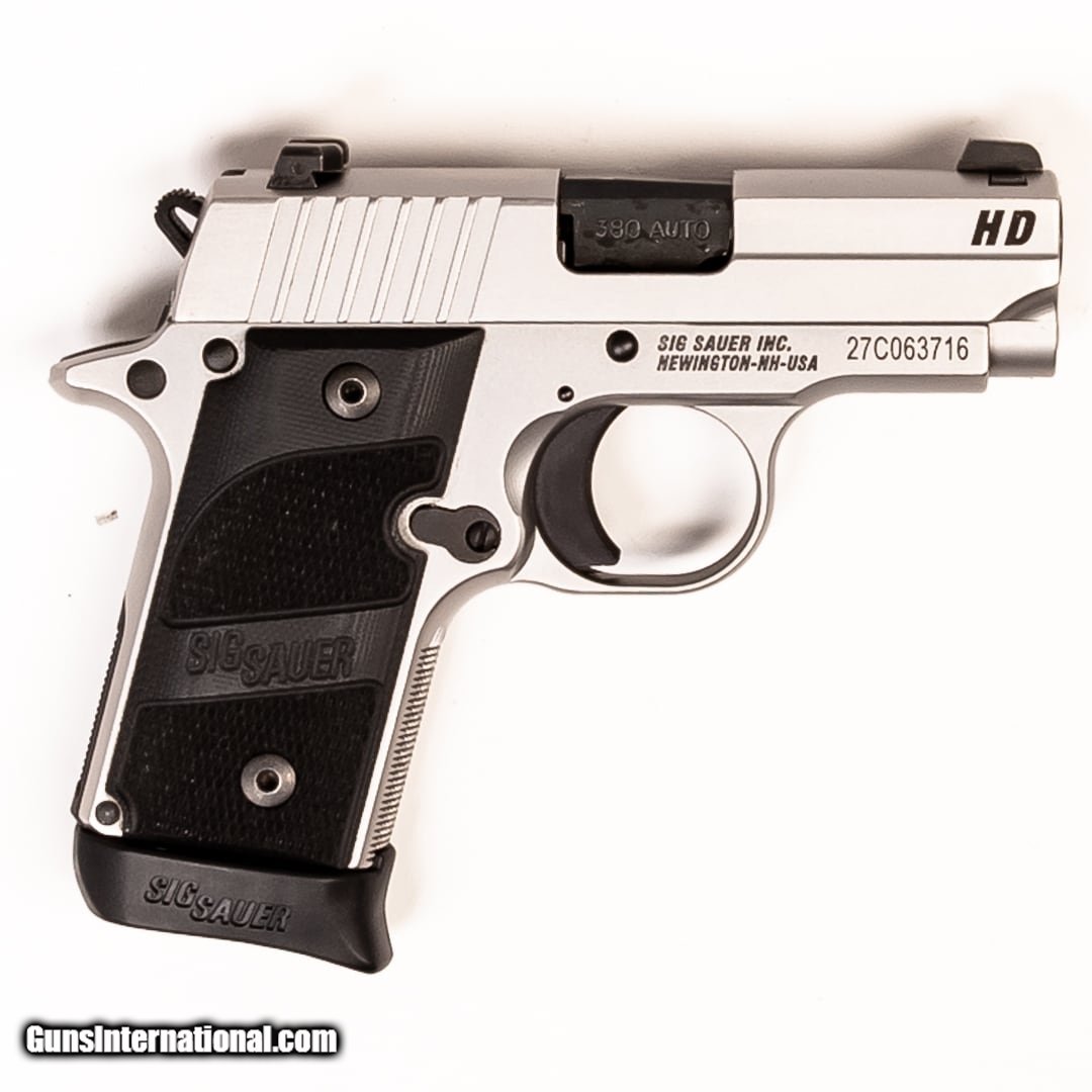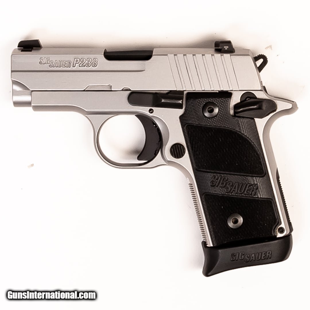 Description: Guns Listing ID: 528026 The Sig Sauer P238 is a compact semi-auto patterned off John Browning‚‚s iconic 1911. This is an HD model (Heavy Duty) which features a two-tone stainless-steel and black design. It is perfectly suited for daily carry. This model is equipped with night sights and includes the original case, manual, one 5-round magazine, one 7-round magazine, and a DeSantis pocket holster SOLD Manufacturer: SIG SAUER Model: P238 HD Caliber Info: .380 ACP Condition: Used - Certified Barrels: 2.7 BARREL Finish: STAINLESS |