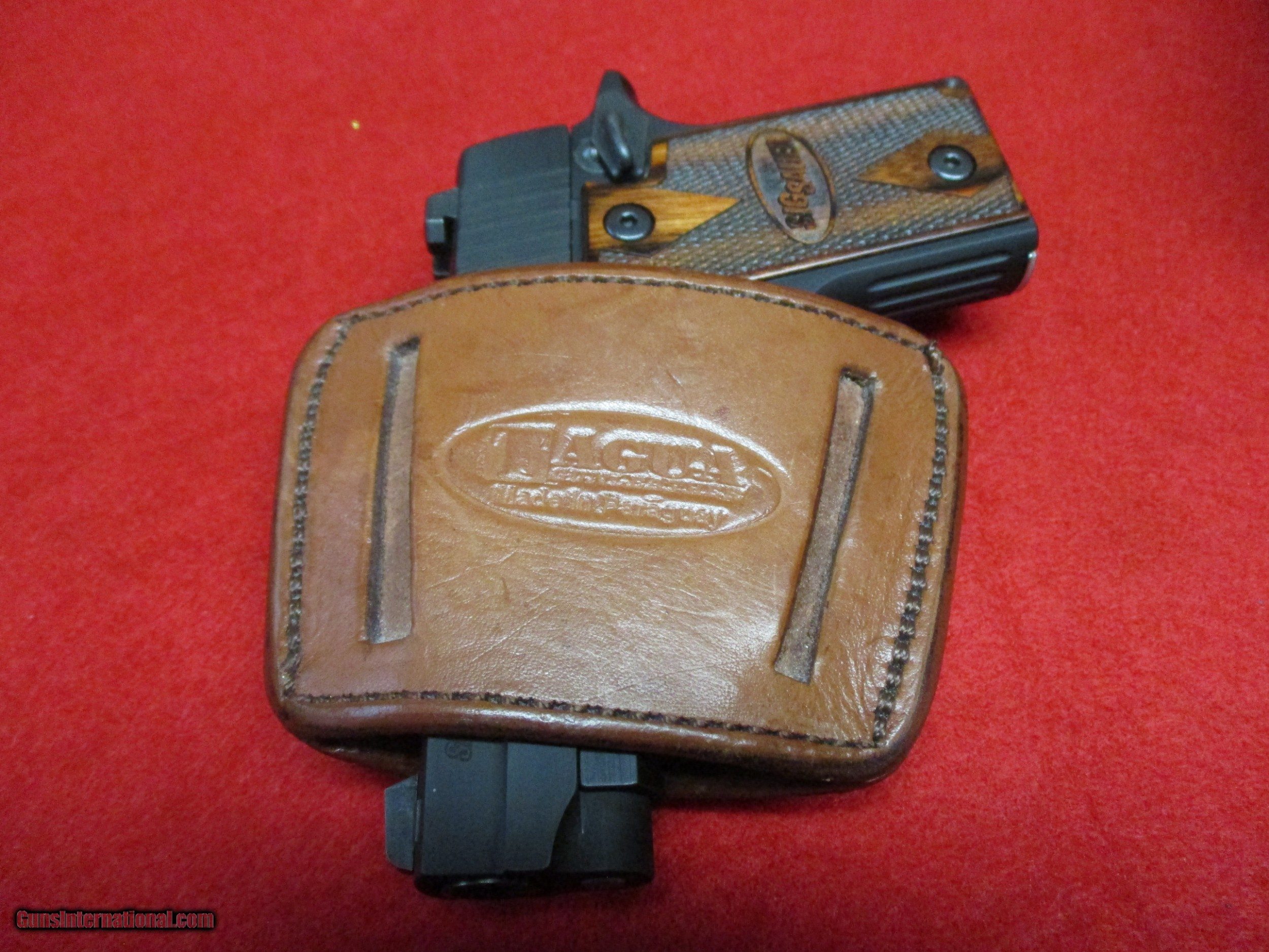 Description: This is a nice example of one of the markets better conceal carry pistols. The P238 is essentially comparable to the Colt Mustang. Unlike the Mustang, the P238 comes in a variety of models. The P238 Rosewood edition features a standard nitron-finish model but with the nice feature of having rosewood grips rather than the plain polymer grips found on the most basic model of the pistol. It also has night sights. The pistol is barely used, having only around 200 rounds put through it. The pistol exhibits slight finish loss on the slide release and the barrel. The slide and frame exhibit no bluing loss whatsoever. The original dual recoil spring has been replaced by a Wolff extra-power single spring, which will reduce the recoil. The pistol comes with the original box, manual, a spare magazine, the original springs, and a Tagua IWB holster (brown). SOLD Manufacturer: Sig Sauer Model: 238 Rosewood Serial Number: 27A033023 Caliber Info: 380 ACP Condition: Used - Excellent Barrels: 2.7 inches (69mm) Action: Single-Action Pistol Stock: Rosewood Grips Finish: Nitron Sights: Night Sights Manufacture Date: September 22, 2010 Extras: Tagua Holster, Spare Mag Case: Sig Sauer Case |