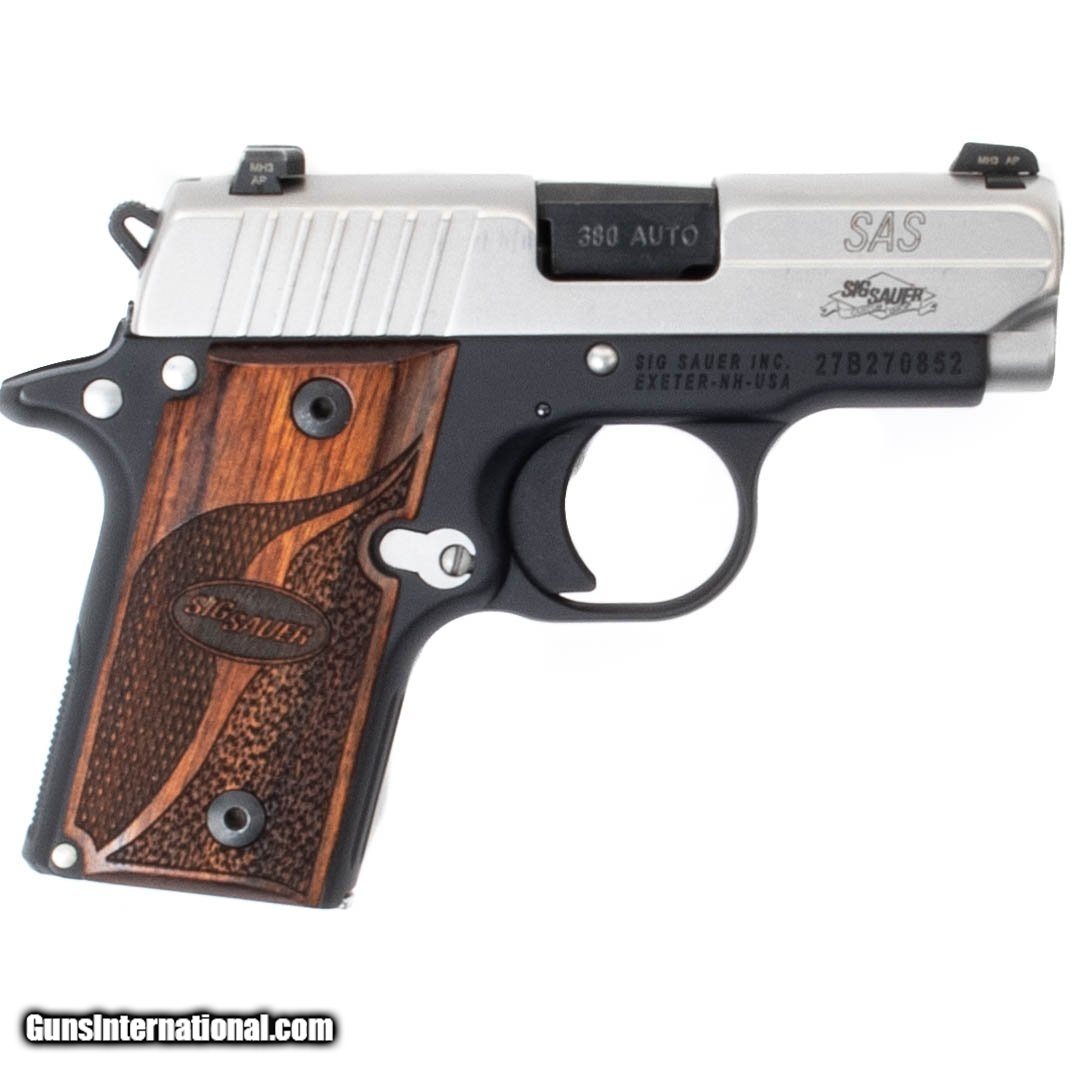 Description: Guns Listing ID: 520188 This Sig Sauer P238 SAS features wood grips, night sights, and an external safety. The original case and one 6-round magazine are included. Get the best bang for your buck when you get a Certified Used Firearm . When you see the Certified Used stamp on any of our firearms, you can be confident that you‚‚re getting exactly what you want – a gun only in very good to excellent condition and held to the highest quality standard. All Certified Used Guns come with a ‚‚no questions asked‚‚ return policy . PLUS, ALL CERTIFIED USED GUNS SHIP FR SOLD Manufacturer: SIG SAUER Model: P238 SAS Caliber Info: .380 ACP Condition: Used - Certified Barrels: 2.75 Action: SEMI AUTOMATIC Finish: 2-tone Weight: 0.8 |