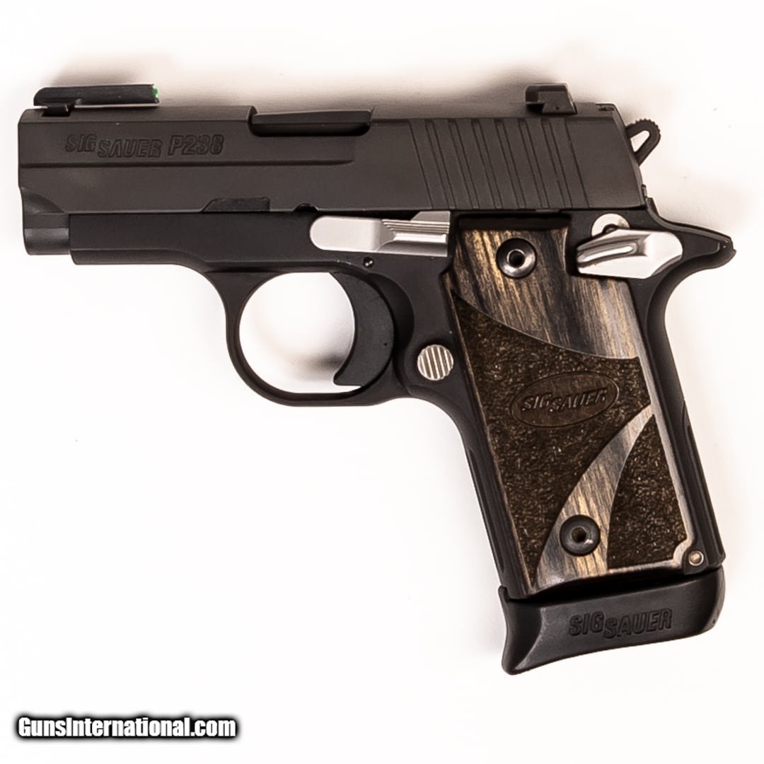 Description: Guns Listing ID: 528029 This Sig Sauer P238 is a sub-compact handgun chambered in 380 ACP and designed for concealed carry. It has an all-metal design, excellent ergonomics, and is surprisingly accurate for having such a short barrel. This P238 is equipped with Sig wood grips, night sights, and a fiber optic front sight. It includes the original case, one 6-round magazine, one 7-round magazine with pinky extension, and an IWB holster. SOLD Manufacturer: SIG SAUER Model: P238 Caliber Info: .380 ACP Condition: Used - Certified Barrels: 2.7 BARREL Finish: BLACK |
