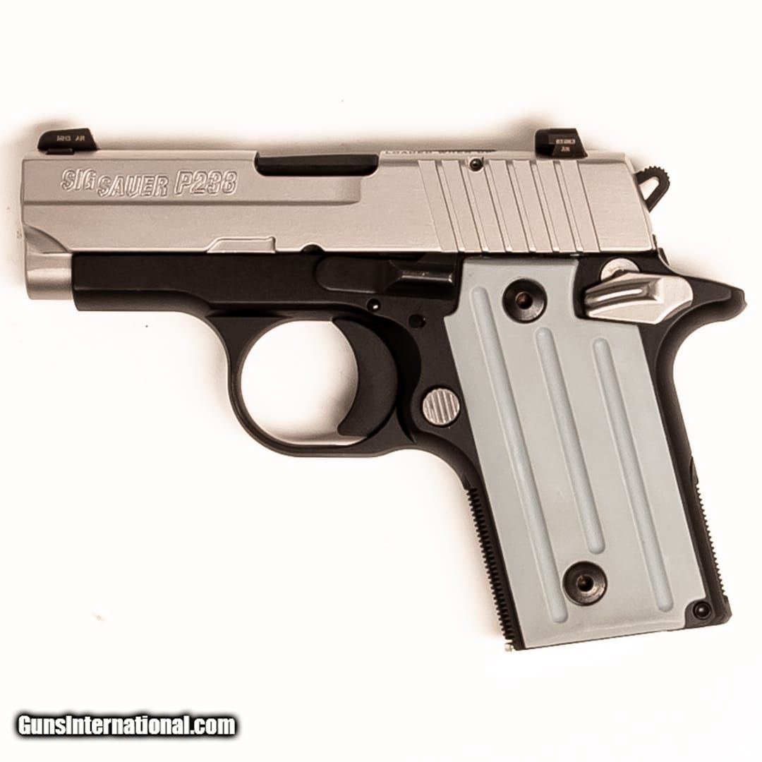 Description: Guns Listing ID: 598389 The Sig Sauer P238 is a compact handgun designed off the 1911. Chambered in .380 acp with an overall length just short of 5.5 inches, this is a great concealed carry pistol with a touch of class. This handgun features one 7-round magazine, a trigger guard holster, and the orignal case. SOLD Manufacturer: SIG SAUER Model: P238 Caliber Info: .380 ACP Condition: Used - Certified Barrels: 2.7 BARREL Finish: TWO-TONE STAINLESS |