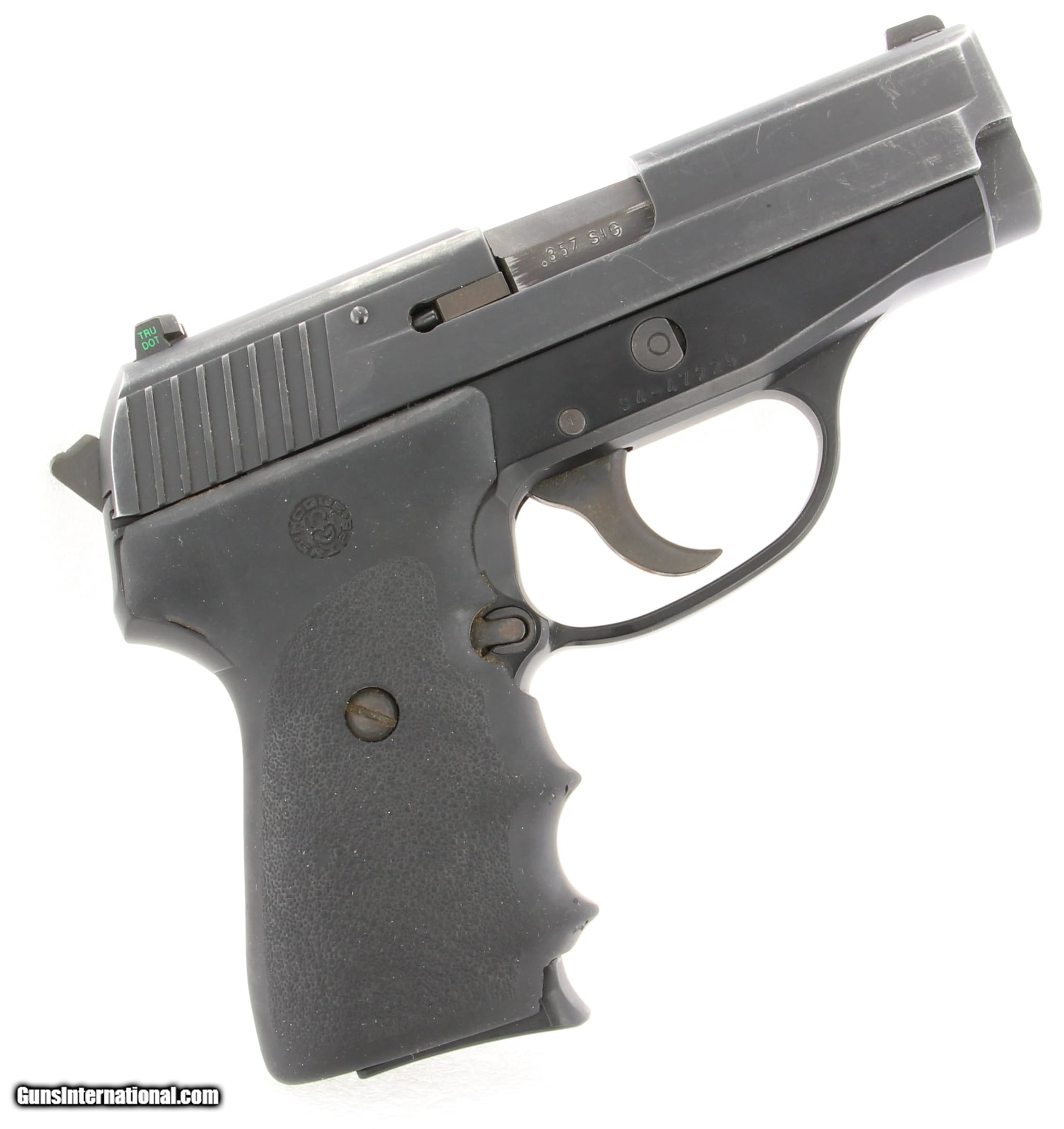 Description: Guns Listing ID: 661406 up for sale is a P239, comes with one clip. no box. The P239 was developed in response to demands from law enforcement and federal agents for a compact back-up pistol ideal for off duty concealed carry. The slim profile of this single-stack pistol provides easy concealment without sacrificing handling. The excellent handling characteristics of the P239 are the result of engineering we call \"performance engineering\" and it‚‚s one of the keys to all SIG SAUER pistols. The P239 is available in three calibers (9mm, .357SIG or .40S&W) offering you the choice that‚‚s right for you. The Hogue rubber grips are molded from durable synthetic rubber that is neither spongy nor tacky yet provides a soft recoil absorbing feel without affecting accuracy. This modern rubber requires a completely different molding process than ordinary neoprene resulting in a much superior grip. The flexibility of our materials and molding process has allowed us to produce rubber grips with features that out perform all other make SOLD Manufacturer: SIG SAUER Model: P239 Caliber Info: .357 SIG Condition: Used - Non-Certified Barrels: 3.6 BARREL |