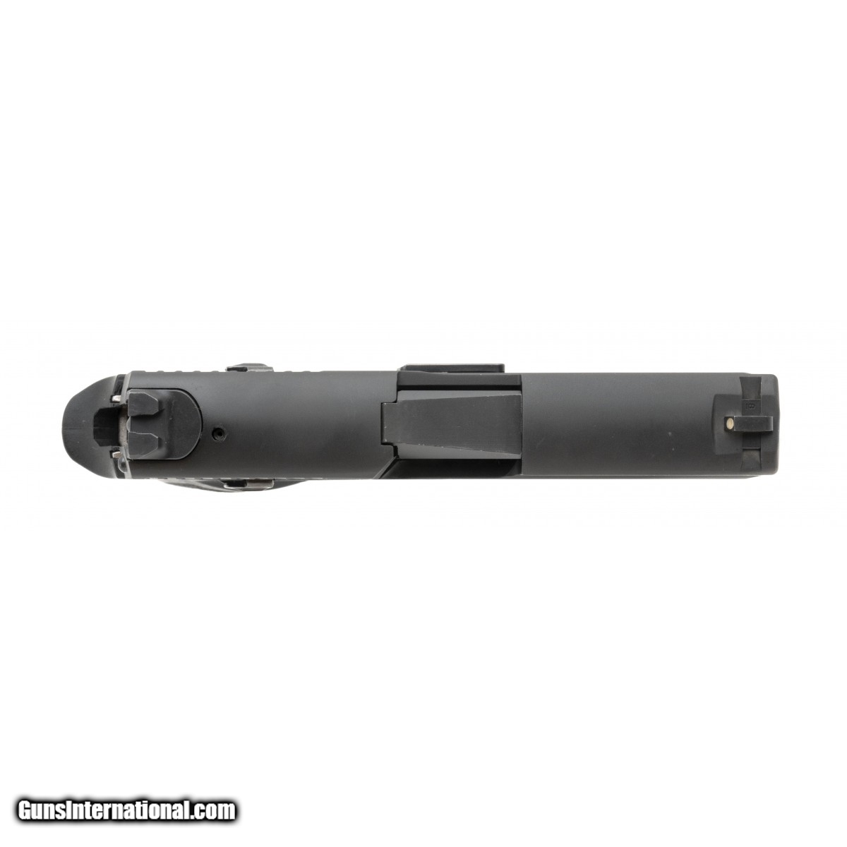 Description: " SN:EAK136444. Semi-automatic DAO duty pistol with 15RD capacity, polymer frame, night sights, black finish, and a flush hammer. In excellent condition. SOLD |