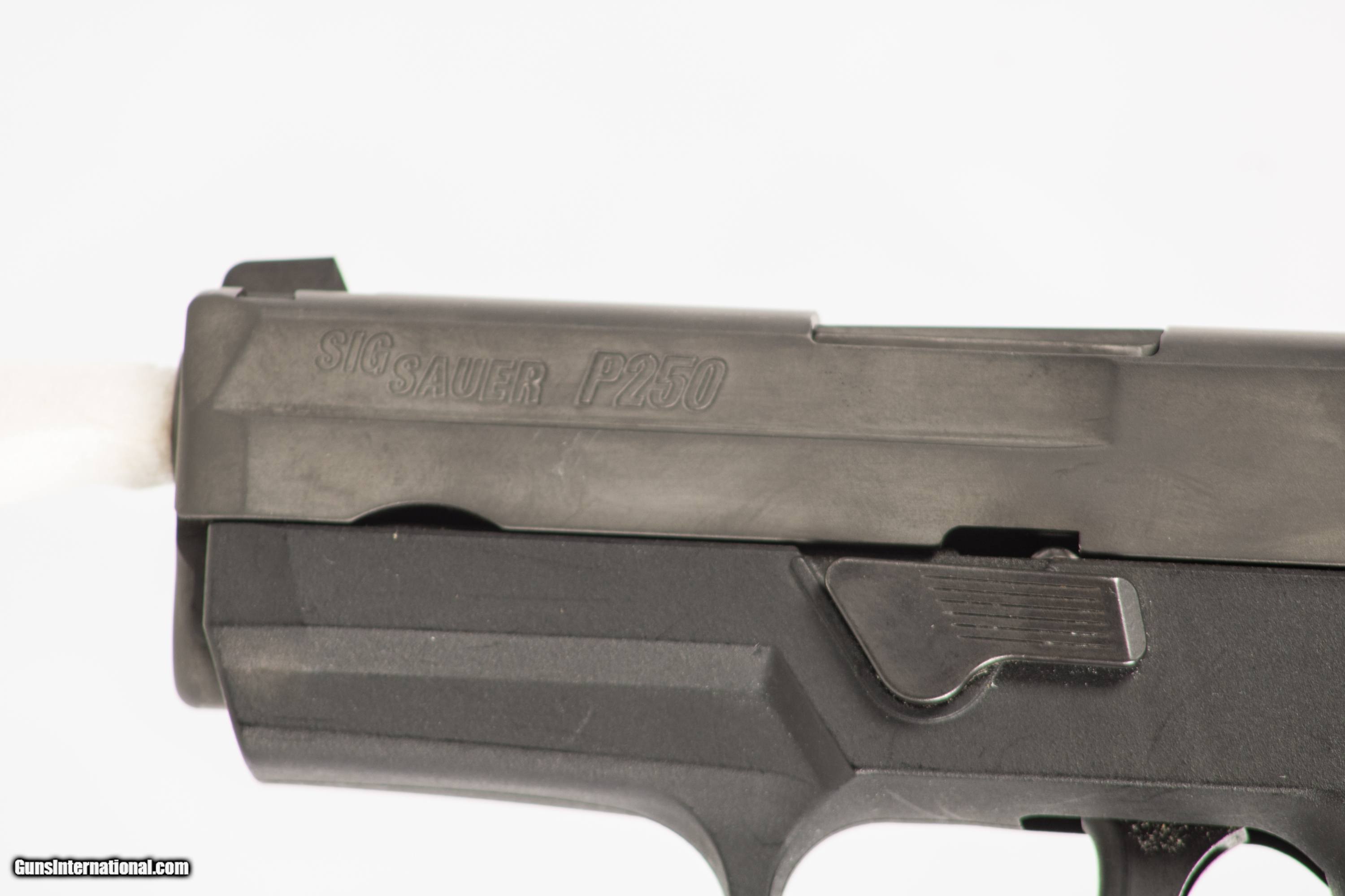 Sig Sauer P250 chambered in 9 mm with a 3 1/2 inch barrel bright & shiny bore case and extra magazine. This gun is in excellent condition and is covered by Dury's Lifetime Warranty.