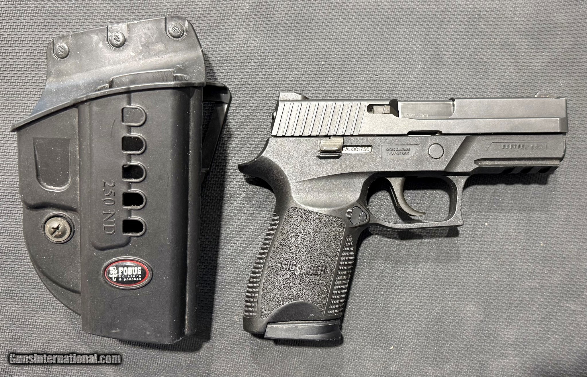 Description: Guns Listing ID: 525517 SIG SAUER P250 COMPACT 9MM with Holster NOT 40 S&W!!! SOLD Manufacturer: SIG SAUER Model: P250 COMPACT Caliber Info: .40 S&W Condition: Used - Non-Certified Barrels: 3.9 BARREL Action: DOUBLE ACTION |