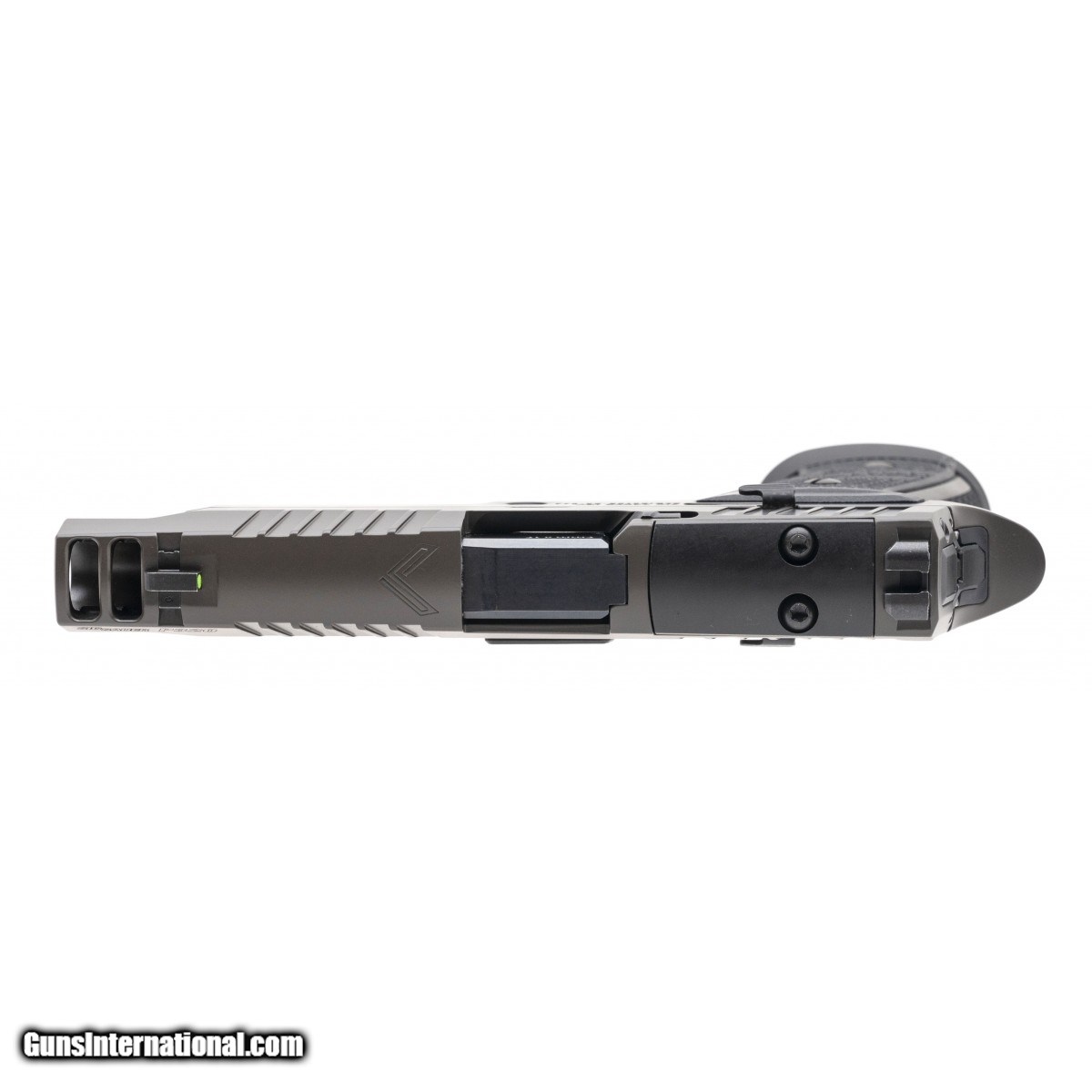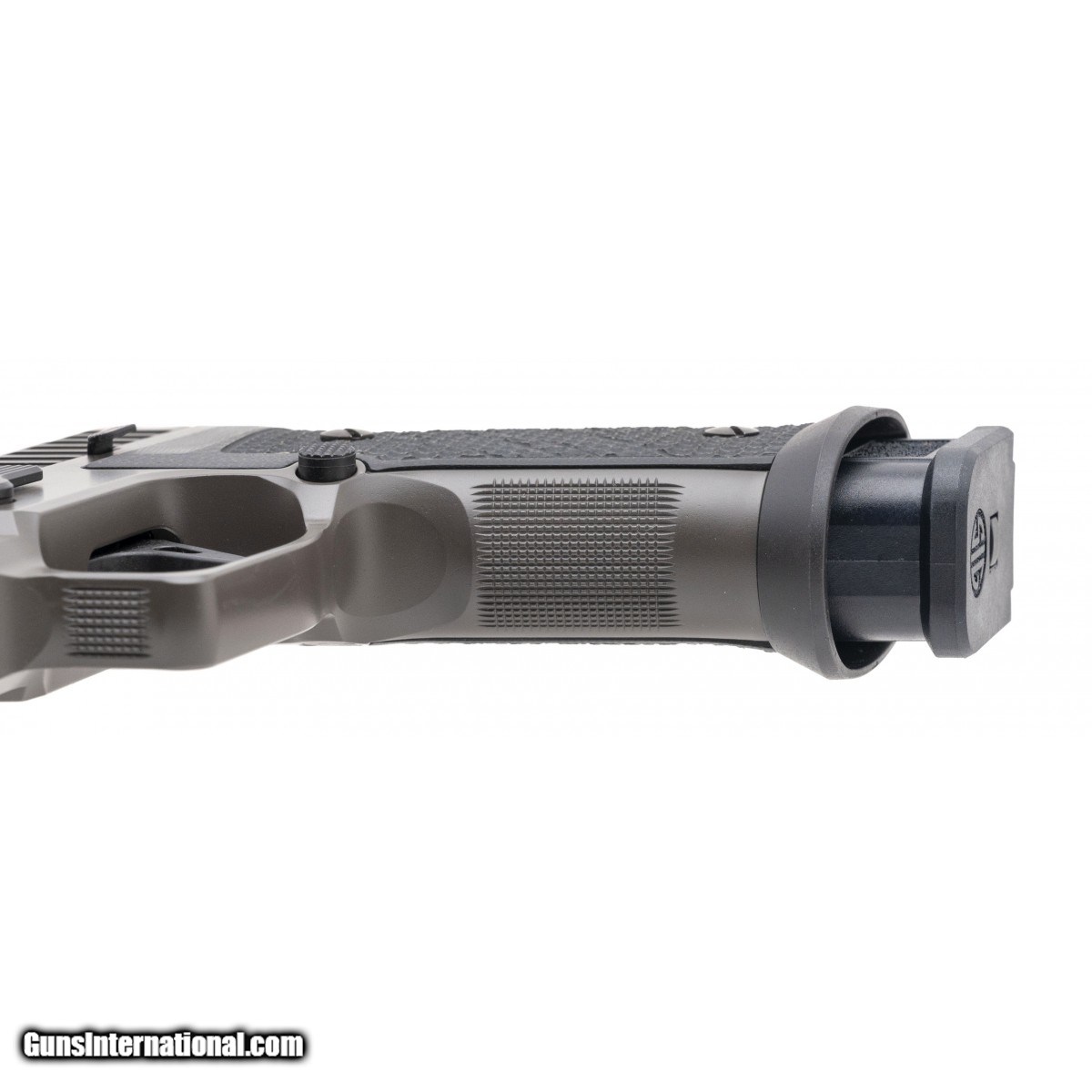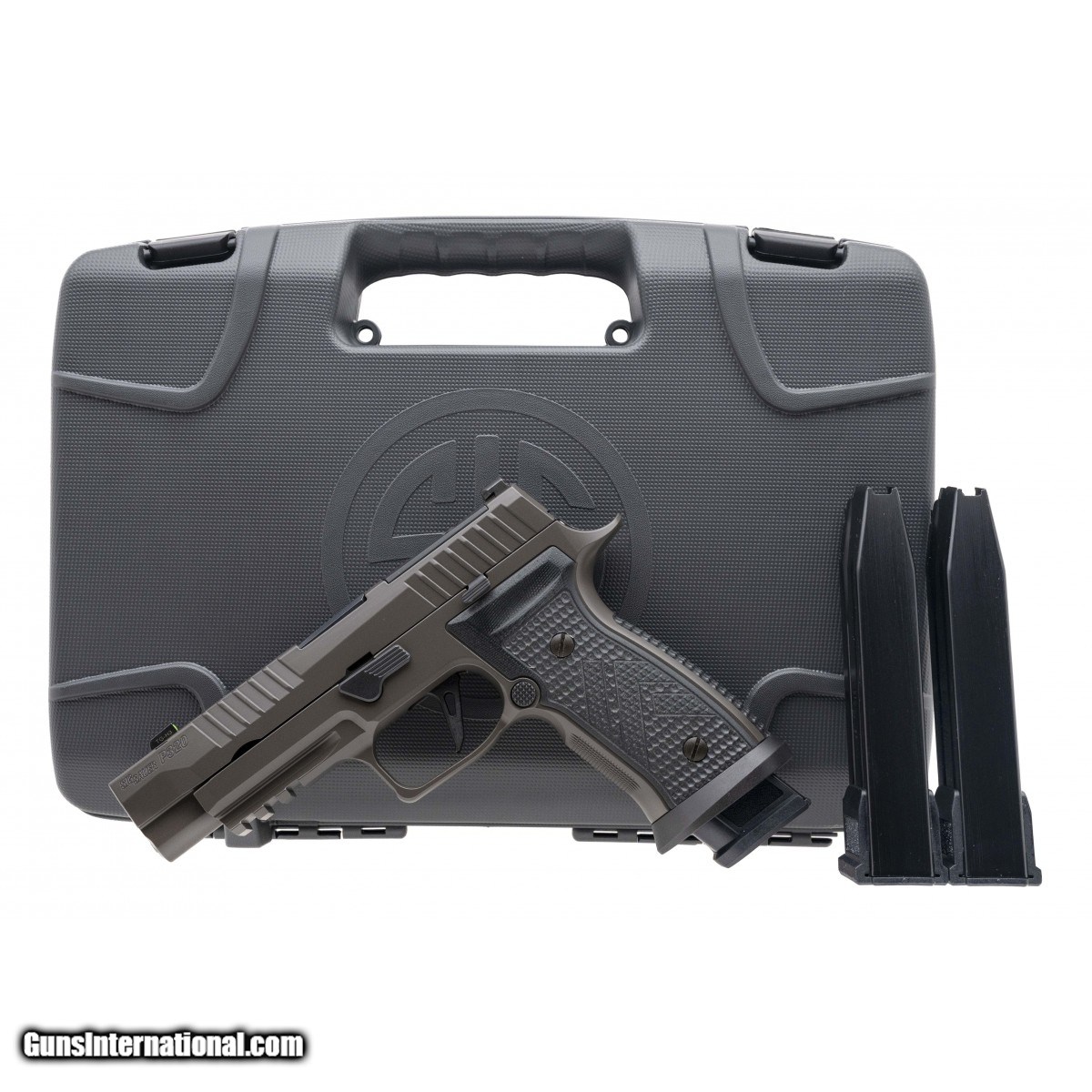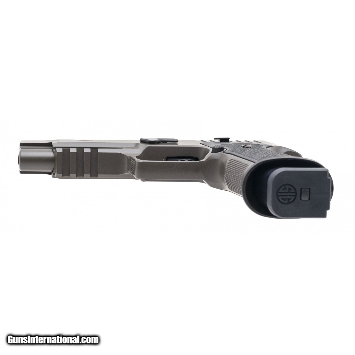SN: 58J600819. Modern production. 9mm with a 3.9"" threaded barrel with power ported slide. Bore is in excellent condition. Sig Sauer full size striker fired alloy frame pistol with a Integrated Expansion Chamber. Legion Grey cerakote finish is in excellent condition. G10 grips are in excellent condition. Overall condition is excellent. Comes with case and two extra magazines.