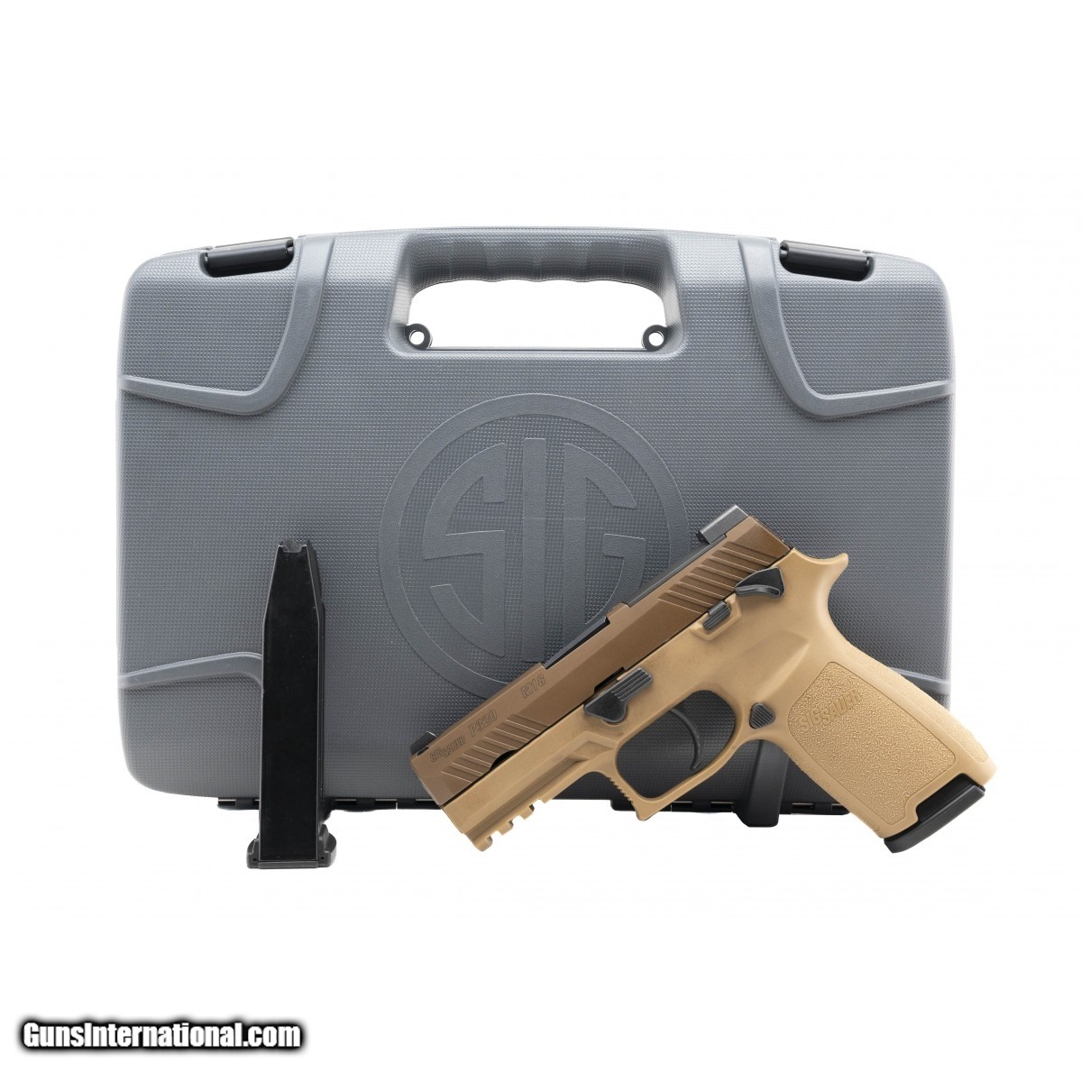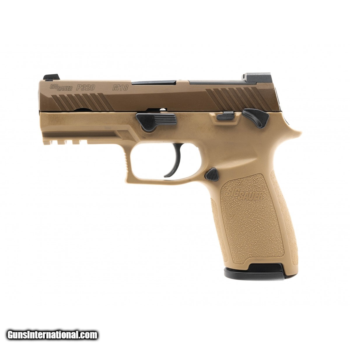 Description: " Military version of the P320 issued to the United States Marine Corp. 17 round magazine. Coyote brown and FDE finish with thumb safety. Comes with night sights and slide optic cut. Very good condition. With box. SOLD |