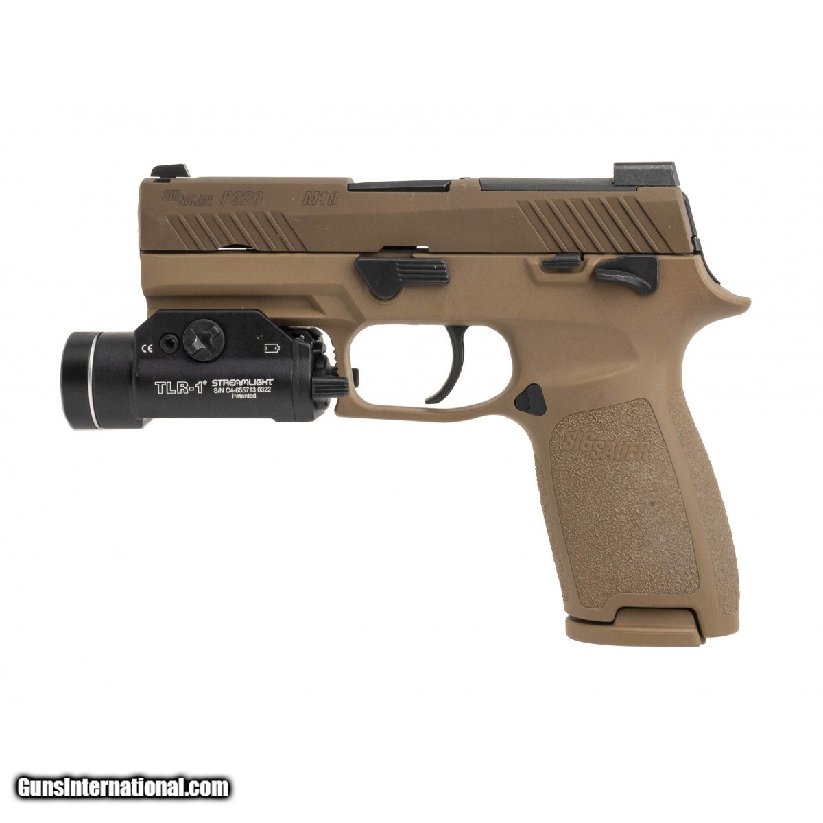 Description: " Sn:M18B058129, Modern production. Military version of the P320 issued to the United States Marine Corp. Coyote brown and FDE finish with thumb safety. Comes with night sights, TLR-1, and 4 Magazines. Very good condition. With box. Austin location. SOLD |