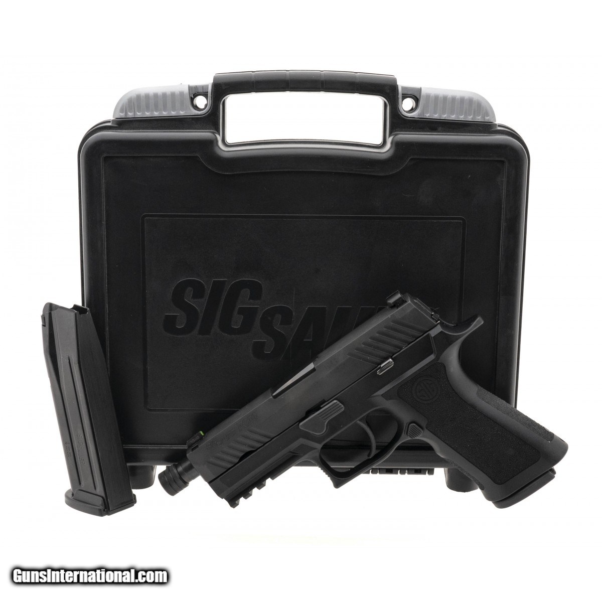 SN: 58C061651. Modern production. Striker fired polymer-framed double-stack pistol made by Sig. 4.3"" threaded barrel chambered for 9mm. Features accessory rail and tritium night sights. Comes with original box and two magazines.