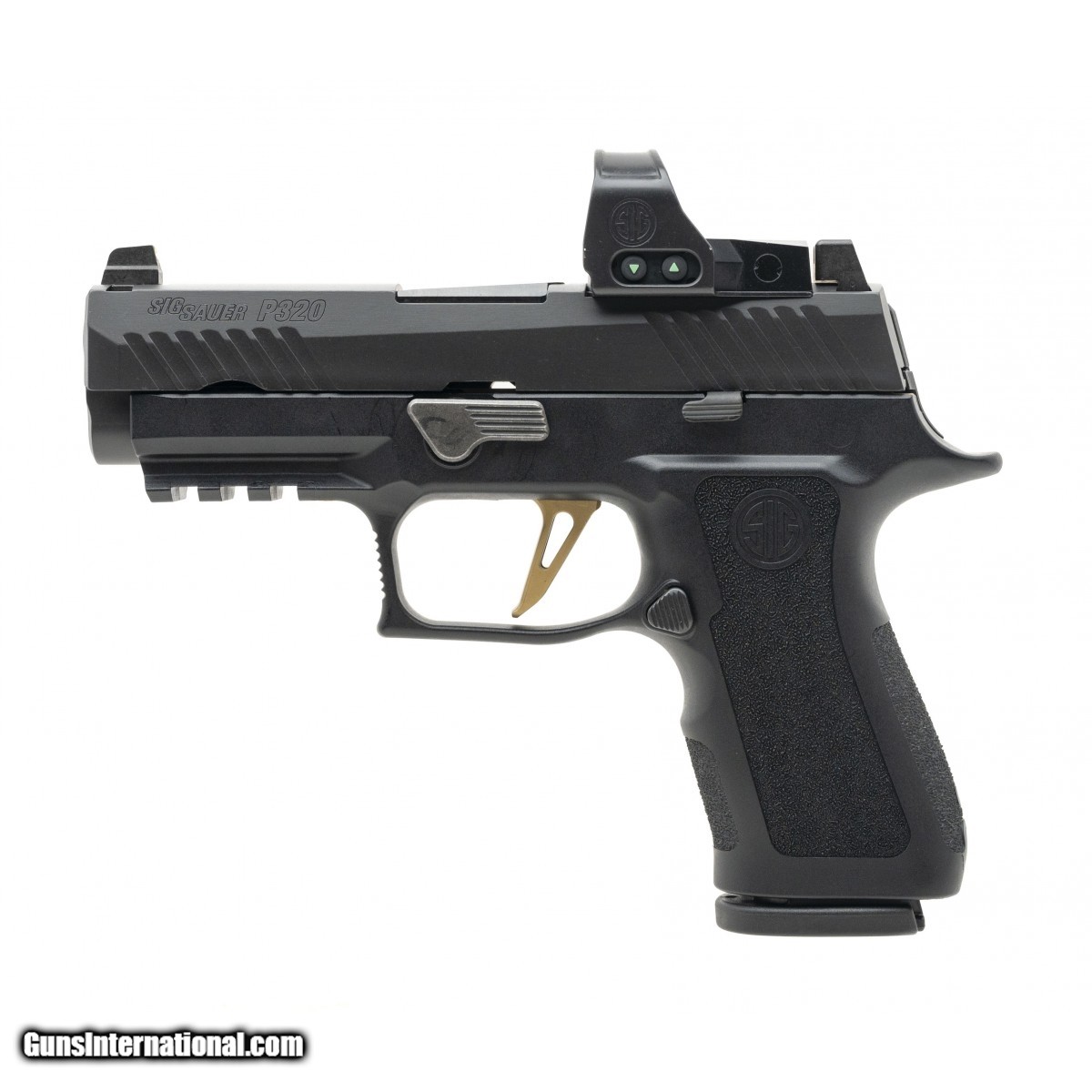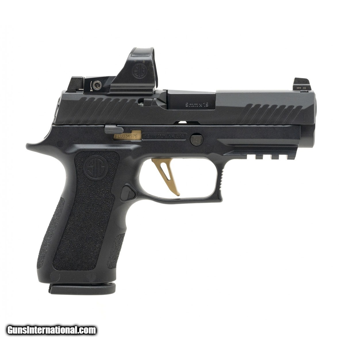SN: FCU334976. Modern production. 9mm with a 3.75"" barrel. Bore is in excellent condition. Sig Sauer Full size polymer frame handgun with optic ready slide. Finish is in excellent condition. Grips are in excellent condition. Overall condition is excellent. Comes with case, extra magazine, and Sig Sauer Romeo1Pro 1x30mm red dot sight.