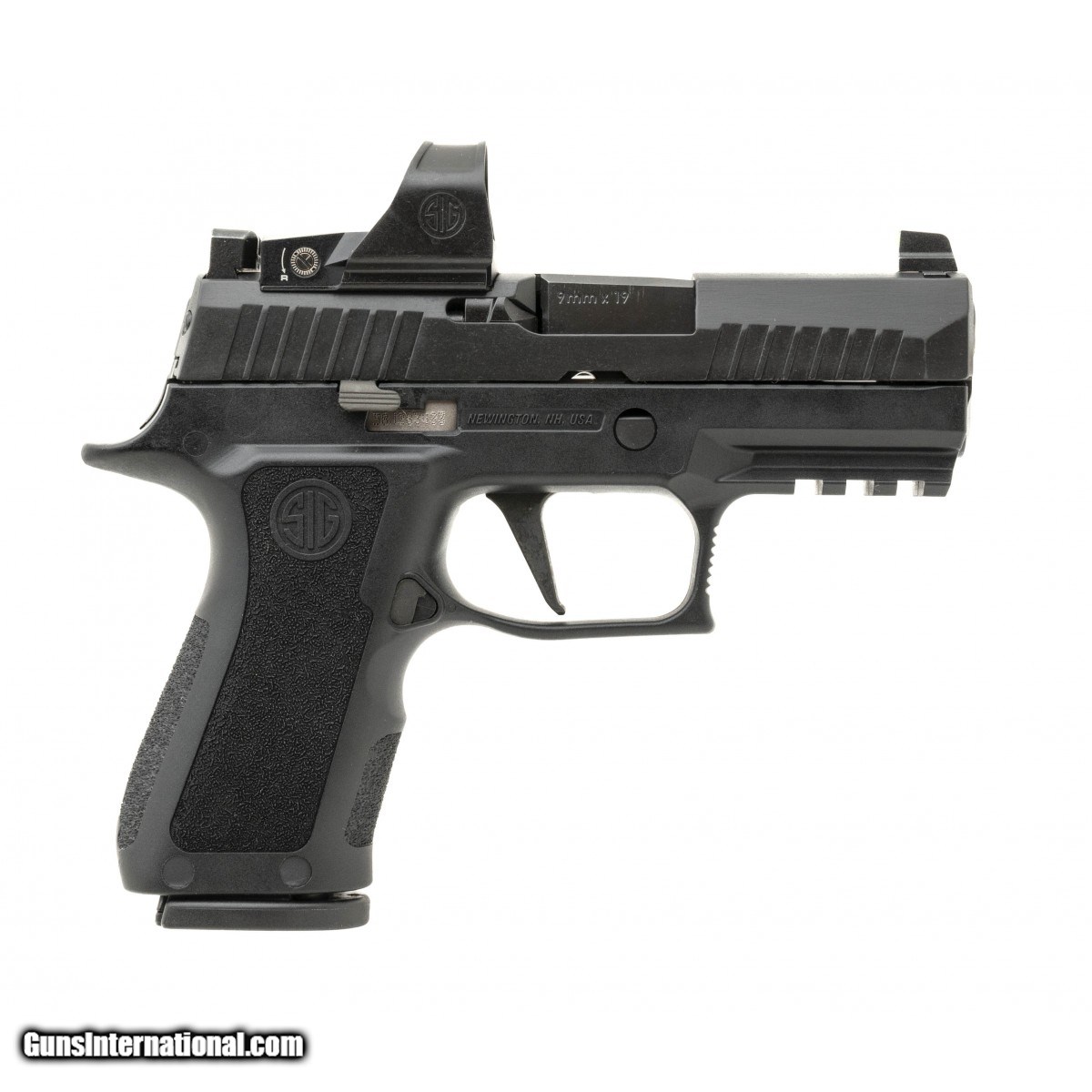 Optic-ready compact pistol with 3.9"" barrel, Sig X-Ray suppressor height sights, x-compact carry grip 3-15rd magazines and Romeo 1 Pro red dot optic. NEW. UPC: 798681621446