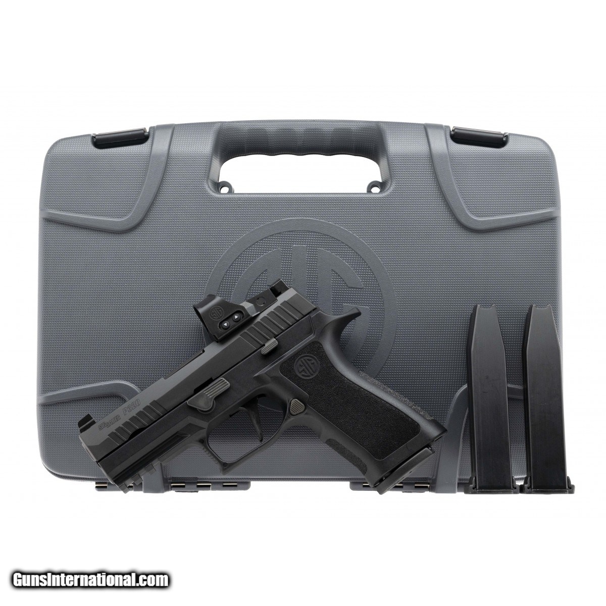 Semi-auto polymer frame pistol with a 3.9"" barrel, Sig Romeo 1 Pro optic mounted, suppressor height night sights and, a flat faced trigger. NEW, UPC:798681621453.