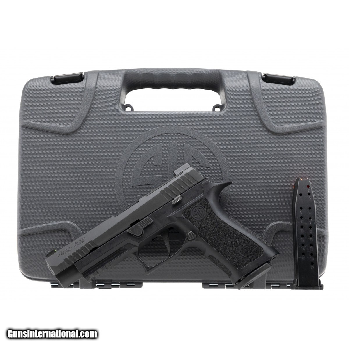 Full-sized, striker-fired pistol with flat trigger, ambidextrous slide release and x-ray night sights In excellent condition with box and extra magazine.