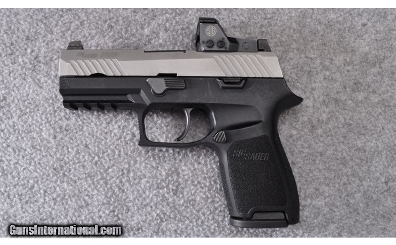 Description: This Sig Sauer P320 remains in very good condition but shows some use and carry wear. Bottom picatinny rail and Sig Romeo 1 Red Dot Sight. Complete with plastic Sig case and extra (2 total) 15 round magazines. 9mm Parabellum SOLD Metal Condition: Very Good Bore Condition: Very Good Barrels: 3 5/8 Triggers: Factory Fore End: Textured Black Sig Grips Weight: 30 OZ Sights: Original Three Dot White Sight with Sig Romeo 1 Red Dot Sight Item Location: Wheeling |