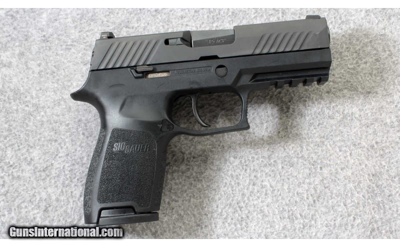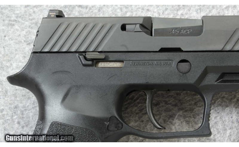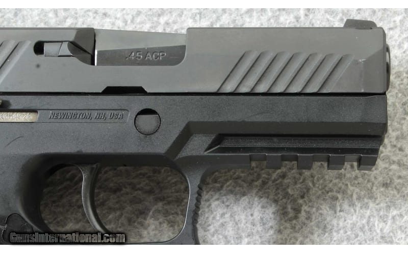 Description: The Sig Sauer® P320 Semi-Auto Pistol is a lightweight polymer-frame, striker-fired pistol that points on target instinctively to deliver major firepower. A smooth, consistent trigger pull permits precision shot placement as well as rapid, controlled fire. An ergonomic textured grip provides a non-slip hold, even with sweaty hands. The frame features an integral Picatinny rail for attaching aftermarket sights and lights. A serialized, stainless steel inner frame assembly allows interchangeability with aftermarket grip modules according to one's hand size. The corrosion-resistant, Nitron™ coated stainless steel slide features front and rear serrations to enhance the shooter's ability to pull the slide back for loading and clearing the action. The sights provide rapid sight acquisition. The Sig Sauer P320 Semi-Auto Pistol safely fieldstrips in seconds, without the use of tools for cleaning and maintenance. Manufactured 2020. .45 ACP SOLD Metal Condition: Excellent with some scratches Bore Condition: Excellent Barrels: 3.9 inch barrel Weight: 30 Oz. Sights: Siglite 3 dot night sights Item Location: Lehi, UT |
