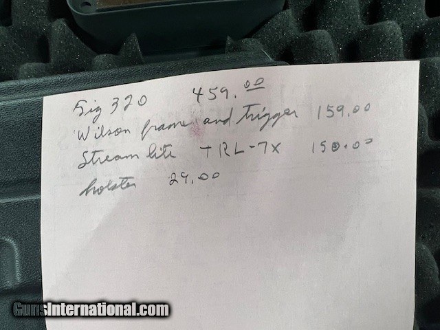 Description: This sig 9mm has a wilson combat frame has TLR-7x light. Has original frame, holster that fits with light attached. Pisstol is like new with box. SOLD Handgun Caliber: 9x19mm Parabellum (9mm Luger, 9x19mm NATO) Manufacturer: Sig Sauer Model: P320 Condition: Like new Metal Condition: like new Bore Condition: Like new |