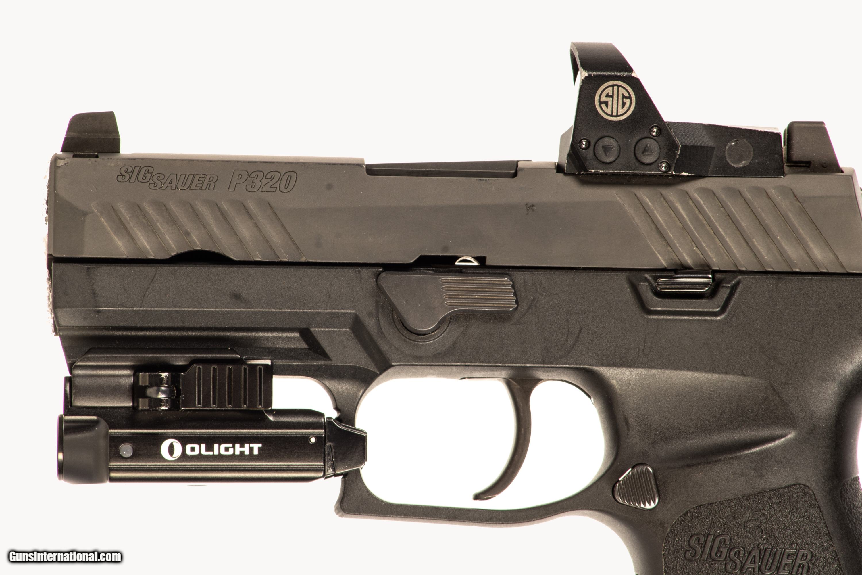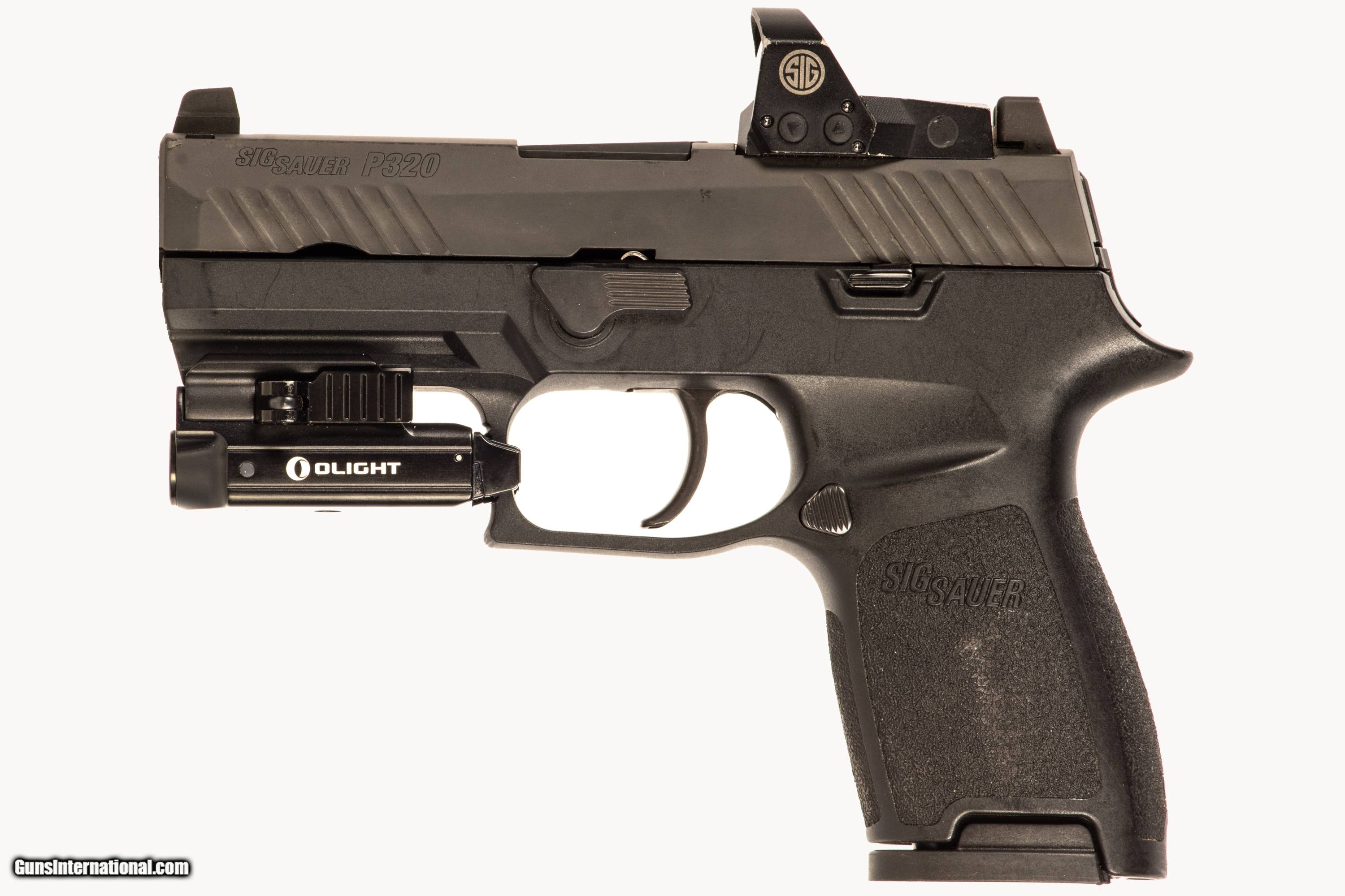 SIg Sauer P320 chambered in 9mm with a 4 inch barrel bright & shiny bore case 2 extra magazines holster mini Olight and a Sig Romeo 1 red dot sight. This is a used firearm that is in very good condition and is covered by Dury's Lifetime Warranty.
