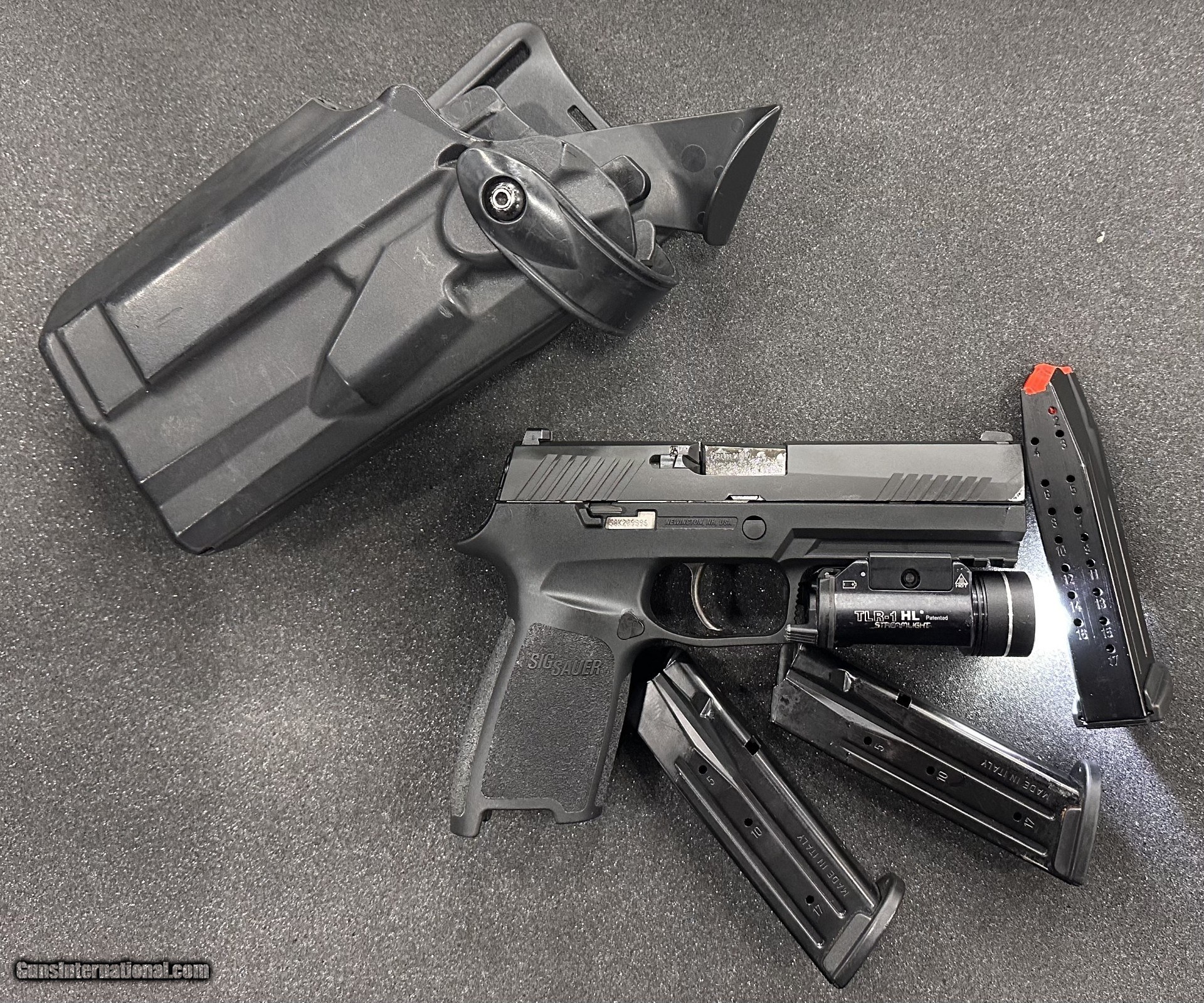 Description: Guns Listing ID: 595022 The SIG SAUER P320 9mm is a modular, striker-fired pistol known for its adaptability, featuring a smooth trigger, interchangeable grip modules and slides, and intuitive takedown. It is available in various sizes like compact and full-size, and can be equipped with a range of sights, including night sights, and often comes with 15- or 17-round magazines. Safety features include a striker safety and disconnect safety, and it can be purchased with or without a manual safety. Key features Modularity: The core design allows for changing grip modules to fit different hand sizes and swapping slides to change barrel length, creating different configurations for various uses like concealed carry, home defense, or target shooting. Trigger: A smooth, crisp, striker-fired trigger is a hallmark of the P320 series. Safety: It includes a striker safety and a disconnect safety, and is available with or without an external manual safety. Early models had a voluntary upgrade program for a potential drop safety issue, which has since been addressed. Disassembly: Features a tool-free, 3-point takedown that is designed to be safe and easy. Sights: Many models come equipped with SIGlite night sights, which are 3-dot night sights. Magazine capacity: Magazine capacity varies by model and size, with common options being 15 or 17 rounds for the 9mm caliber. Controls: Includes an ambidextrous slide lock and reversible magazine release for both left- and right-handed shooters. POLICE TRADE IN THIS IS THE 9MM MODEL Manufacturer: SIG SAUER Model: P320 Caliber Info: 9MM LUGER/.40 S&W/10MM/.45 ACP Condition: Used - Non-Certified Barrels: 8" BARREL Action: SEMI AUTOMATIC Finish: black Price: $435.99 Contact Seller |