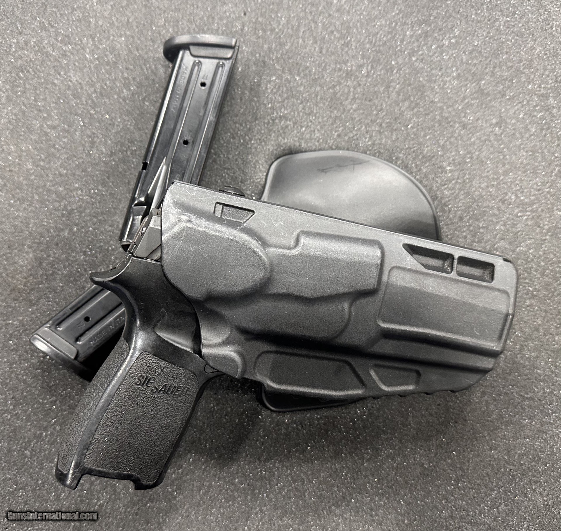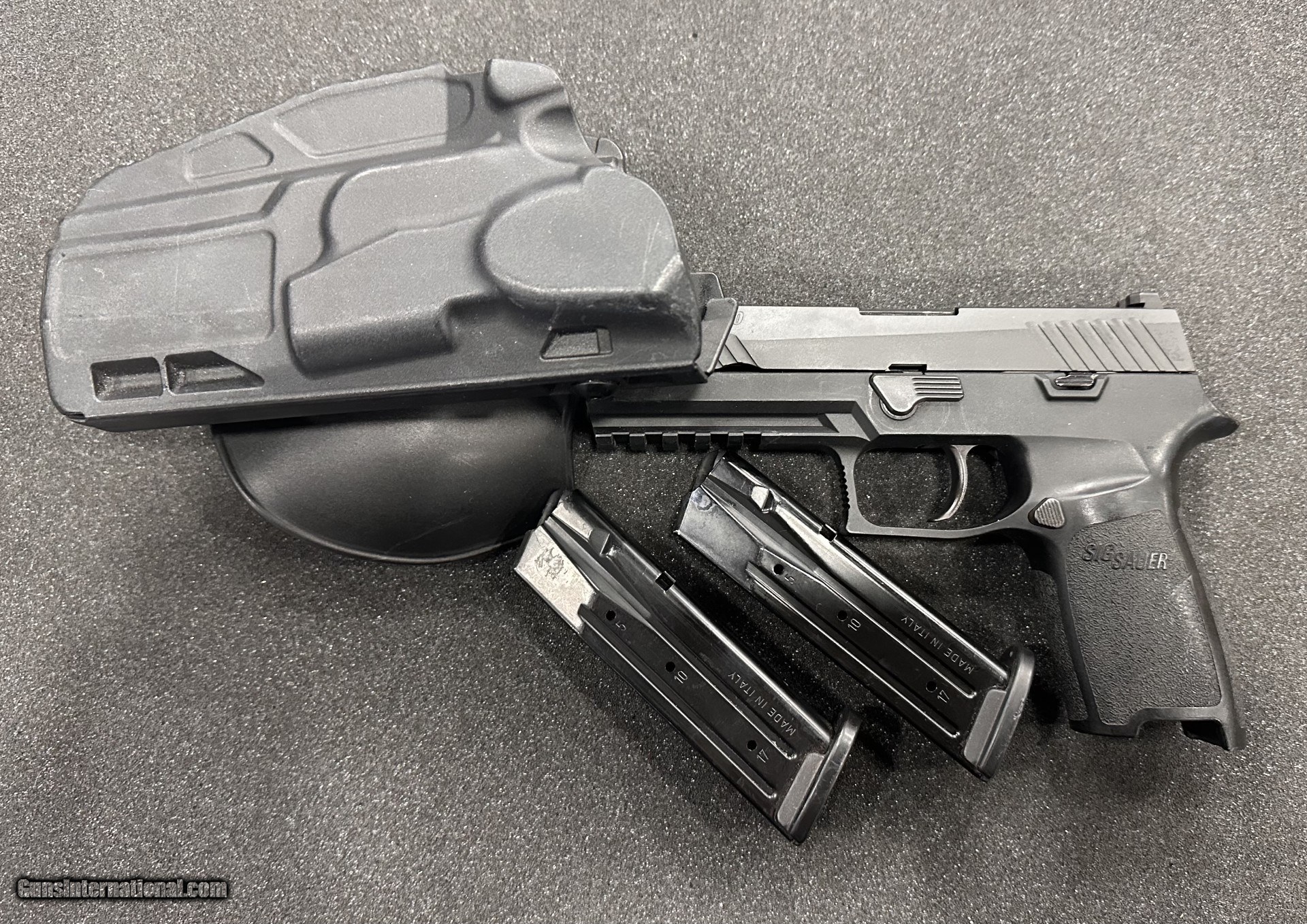 Description: Guns Listing ID: 595076 The SIG SAUER P320 9mm is a modular, striker-fired pistol known for its adaptability, featuring a smooth trigger, interchangeable grip modules and slides, and intuitive takedown. It is available in various sizes like compact and full-size, and can be equipped with a range of sights, including night sights, and often comes with 15- or 17-round magazines. Safety features include a striker safety and disconnect safety, and it can be purchased with or without a manual safety. Key features Modularity: The core design allows for changing grip modules to fit different hand sizes and swapping slides to change barrel length, creating different configurations for various uses like concealed carry, home defense, or target shooting. Trigger: A smooth, crisp, striker-fired trigger is a hallmark of the P320 series. Safety: It includes a striker safety and a disconnect safety, and is available with or without an external manual safety. Early models had a voluntary upgrade program for a potential drop safety issue, which has since been addressed. Disassembly: Features a tool-free, 3-point takedown that is designed to be safe and easy. Sights: Many models come equipped with SIGlite night sights, which are 3-dot night sights. Magazine capacity: Magazine capacity varies by model and size, with common options being 15 or 17 rounds for the 9mm caliber. Controls: Includes an ambidextrous slide lock and reversible magazine release for both left- and right-handed shooters. POLICE TRADE IN DOES NOT COME WITH A CASE Manufacturer: SIG SAUER Model: P320 Caliber Info: 9MM LUGER (9x19 PARA) Condition: Used - Non-Certified Barrels: 8" BARREL Action: SEMI AUTOMATIC Finish: black Price: $375.99 Contact Seller |