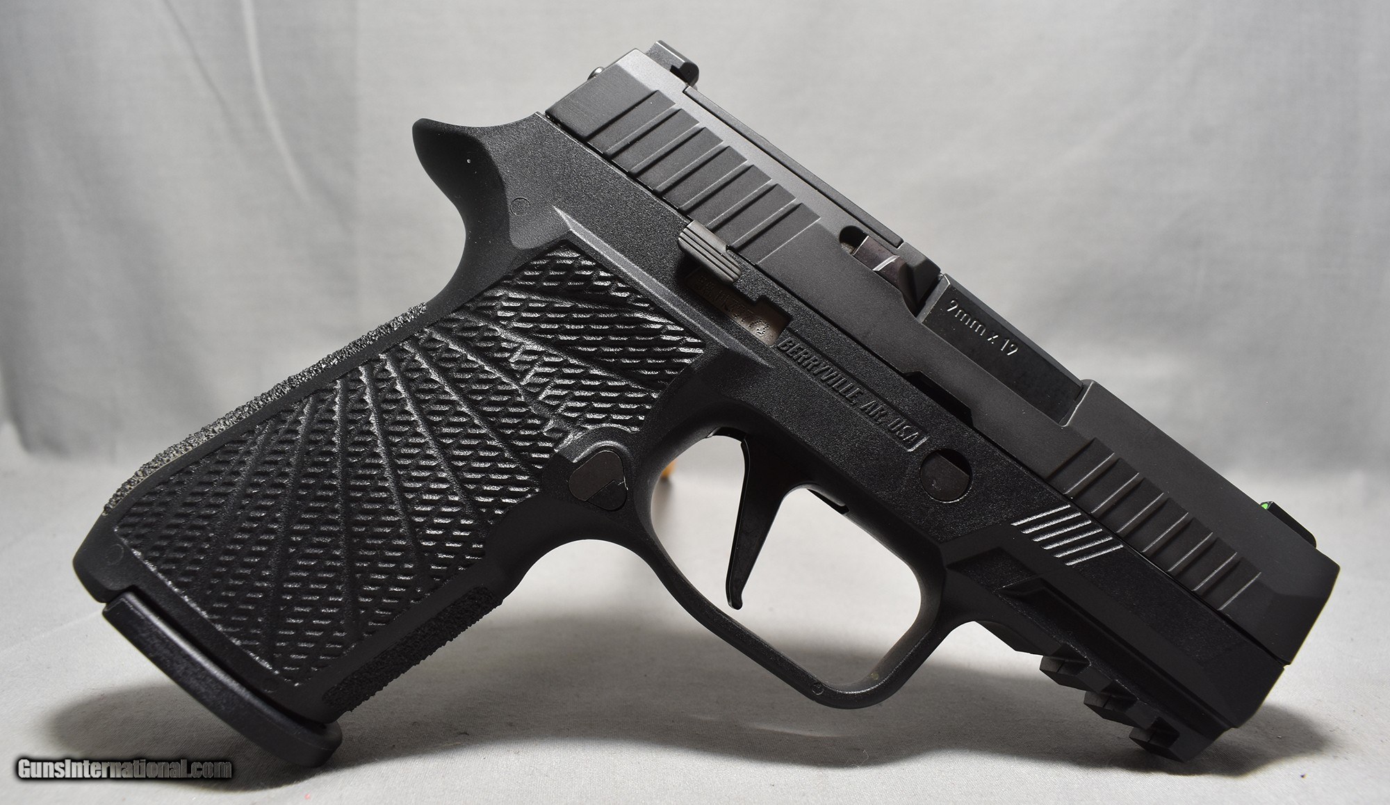 Description: This Sig Sauer P320 9mm is in outstanding condition. It has about three small scuff marks on the left slide. It is mounted on a Wilson Combat. It comes with two extra 15 round magazines, the original frame, manual, and factory hard case. This is a very nice looking gun and setup for a good price. 9mm Luger SOLD Chambers: 9mm with a 15 round magazine Metal Condition: Very good Bore Condition: Very Good Barrels: 3 1/2 Weight: 2 Sights: Adjustable Front Tru H3 and Rear Item Location: Kansas City, KS |