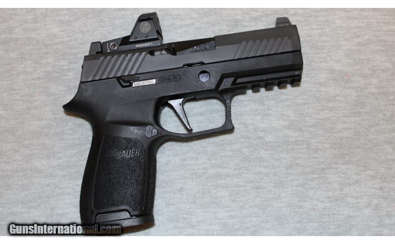 Description: Excellent condition, light wear, small scratches. Comes with one mag and box. Compact size 9mm semi auto pistol - 4" barrel, factory black finish, night sights & Sig red dot, striker trigger, accessory rail, and textured grip surfaces. An excellent choice for concealed carry. 9mm Luger SOLD Chambers: Semi auto Metal Condition: Excellent Bore Condition: Bright Barrels: 4 Triggers: Striker Fore End: Rail for accessory mounting Butt Pad: Polymer frame with integral grip Sights: Night sights and Sig Romeo red dot Item Location: La Vista, NE |
