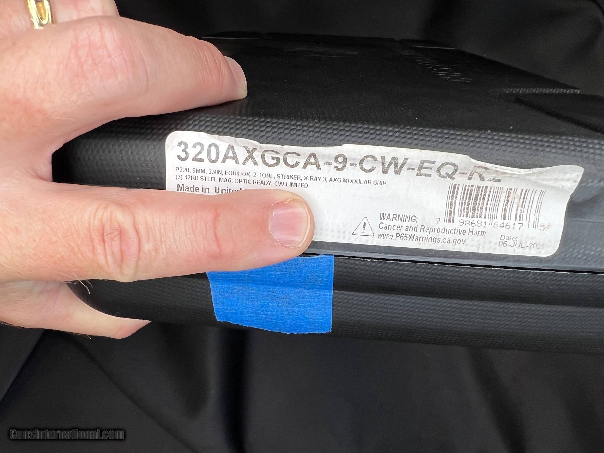 Description: Guns Listing ID: 877233 Open Box stock rotation out of our display cases. Firearm is unfired. We do stock rotations once a quarter and you save $$$. Firearm is as new with all factory warranties. SOLD Manufacturer: SIG SAUER Model: P320 AXG EQUINOX Caliber Info: 9MM LUGER (9X19 PARA) Condition: Used - Non-Certified Barrels: 3.9 BARREL Finish: TWO-TONE |