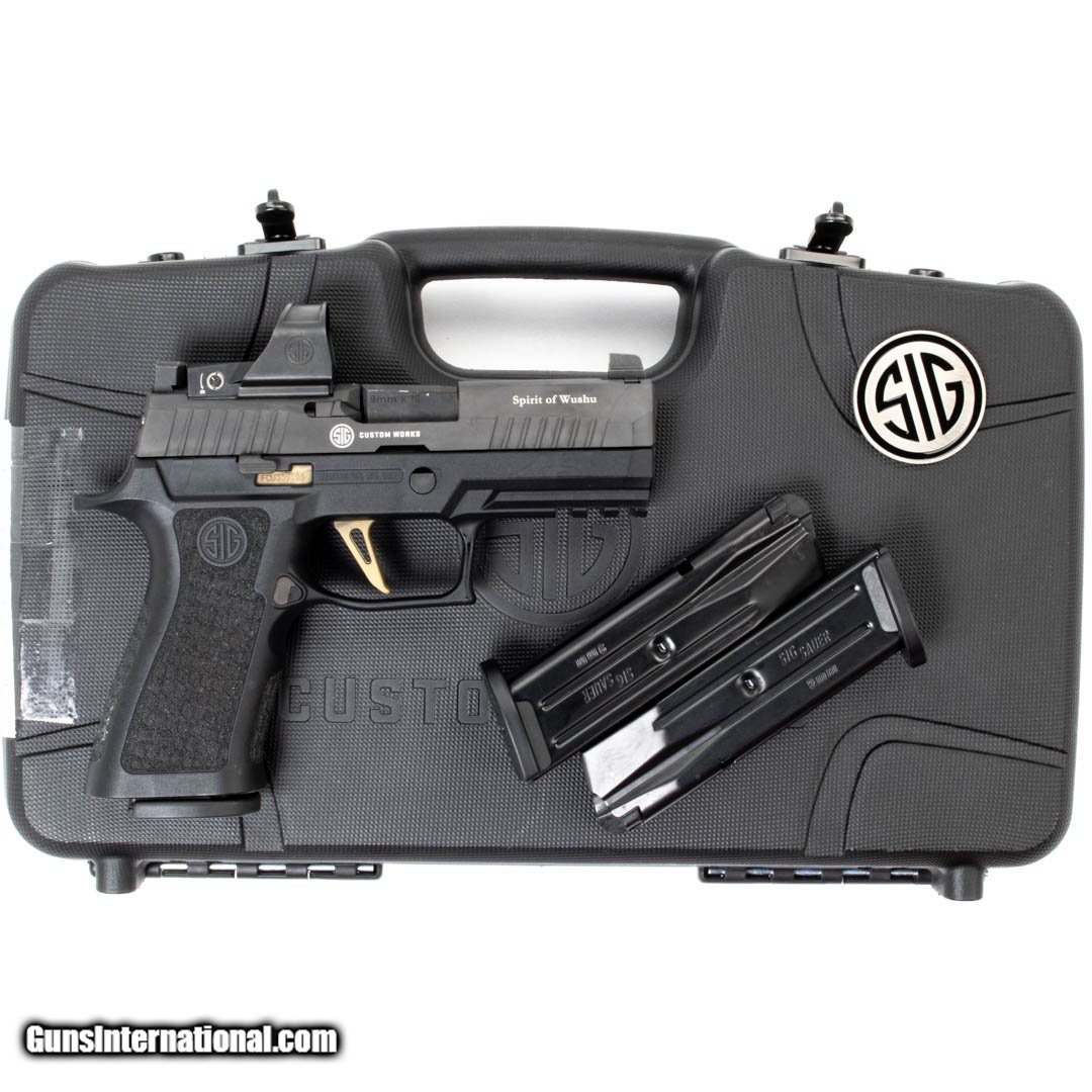 Description: Guns Listing ID: 532704 This Sig Sauer P320 Custom Works features co-witness night sights, a skeletonized flat blade trigger, and a Sig Romeo1 Pro. The engraved slide shows \"Spirit of Wushu\" on the right side and \"Retreat, Hide, Fight\" on the left side. Purchase includes the original locking case, owner‚‚s manual, and three 10-round magazines. Get the best bang for your buck when you get a Certified Used Firearm . When you see the Certified Used stamp on any of our firearms, you can be confident that you‚‚re getting exactly what you want – a gun only in very good to excellent condition and held to the highest quality standard. All Certified Used Guns come with a ‚‚no questions asked‚‚ return policy . PLUS, ALL CERTIFIED USED GUNS SHIP F SOLD Manufacturer: SIG SAUER Model: P320 CUSTOM WORKS Caliber Info: 9MM LUGER (9x19 PARA) Condition: Used - Certified Barrels: 3.75 Action: SEMI AUTOMATIC Finish: black Weight: 1.4 |