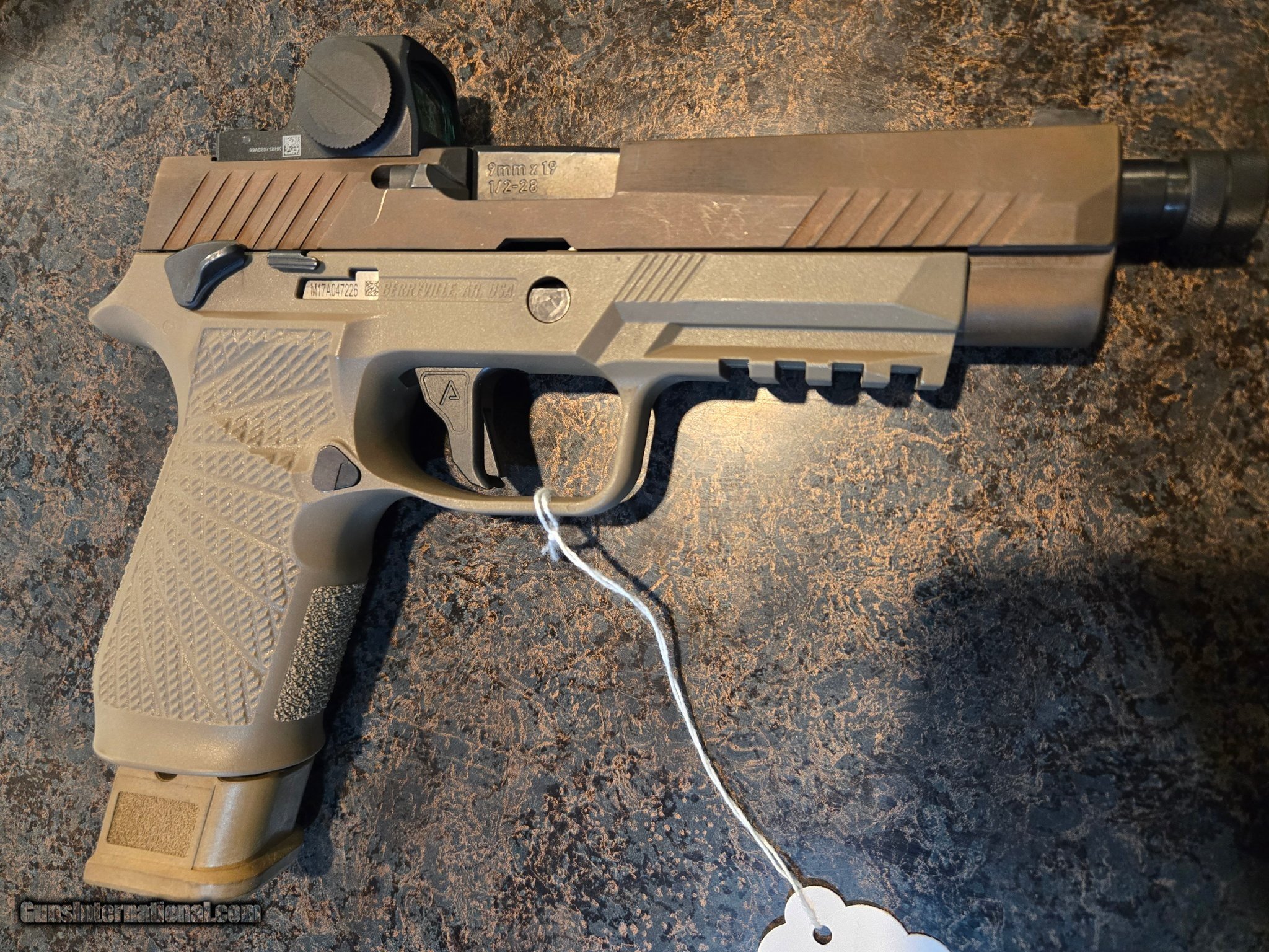 Description: Guns Listing ID: 581906 COMES WITH MANUAL, ONE MAGAZINE AND CASE. COMES AS PICTURED. This is a SIG Sauer P320 M17 pistol with a Wilson Combat grip module and a SIG Sauer Romeo1 reflex red dot sight installed. Here’s a detailed breakdown of what you have: ?? Firearm Overview Model: SIG Sauer P320 M17 The “M17" is the civilian version of the U.S. Army’s M17 service pistol (based on the P320 platform). Chambering is typically 9mm, with a modular serialized fire control unit (FCU) that allows the user to change grip frames and slides. This one features a threaded barrel, likely factory or aftermarket for suppressor or compensator use. ?? Frame / Grip Module Manufacturer: Wilson Combat Wilson Combat produces upgraded grip modules for the P320 that improve ergonomics, grip texture, and control surfaces. The texturing and shape you see are characteristic of their P320 Carry or Full-Size grip modules, depending on barrel/slide length. Marked “WILSON COMBAT" on the side. ?? Optic Model: SIG Sauer ROMEO1 Reflex Sight Compact red dot sight designed to fit directly on optics-ready P320 slides. The two buttons (up and down) adjust brightness. The version shown uses the “PRO" style protective housing with side-mounted battery access. The QR code and serial number help verify authenticity with SIG if needed. ?? Slide Details The slide marking “SIG SAUER P320 M17" identifies it as the M17 variant. The color appears to be Coyote Tan (PVD finish) — standard for the M17 series. The threaded barrel and suppressor-height sights suggest it could be an M17 Threaded Barrel or Custom Works configuration. ?? Trigger The flat-faced trigger is a Wilson Combat or Apex-style aftermarket enhancement for smoother and more consistent pull. Manufacturer: SIG SAUER Model: P320 M17 Caliber Info: 9MM LUGER (9X19 PARA) Condition: Used - Non-Certified Barrels: 4.7" BARREL Action: DOUBLE ACTION Finish: COYOTE TAN Weight: 1.9 lbs. Price: $899.99 Contact Seller |