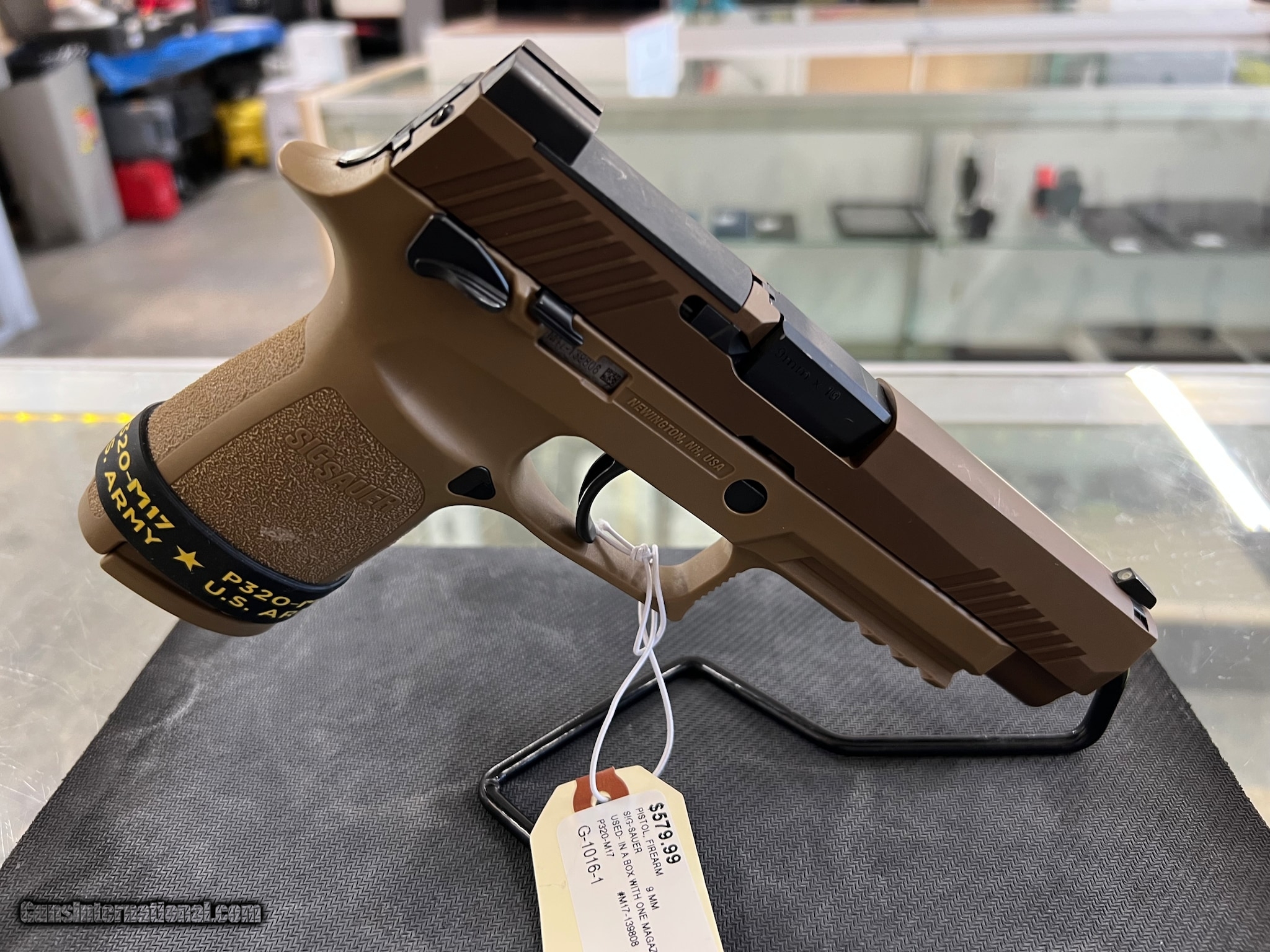 Description: Guns Listing ID: 704408 GREAT GUN IN VERY GOOD CONDITION. The Sig Sauer® P320-M17 Semi-Auto Pistol is the civilian model of the M17 service pistol chosen by the US military to replace the M9. The P320-M17 utilizes a striker-fired system and a modular polymer-frame. A smooth, consistent trigger pull permits precision shot placement as well as rapid, controlled fire. SOLD Manufacturer: SIG SAUER Model: P320 M17 Caliber Info: 9 MM Condition: Used - Non-Certified Barrels: 8 BARREL Finish: SANDSTORM CAMO |
