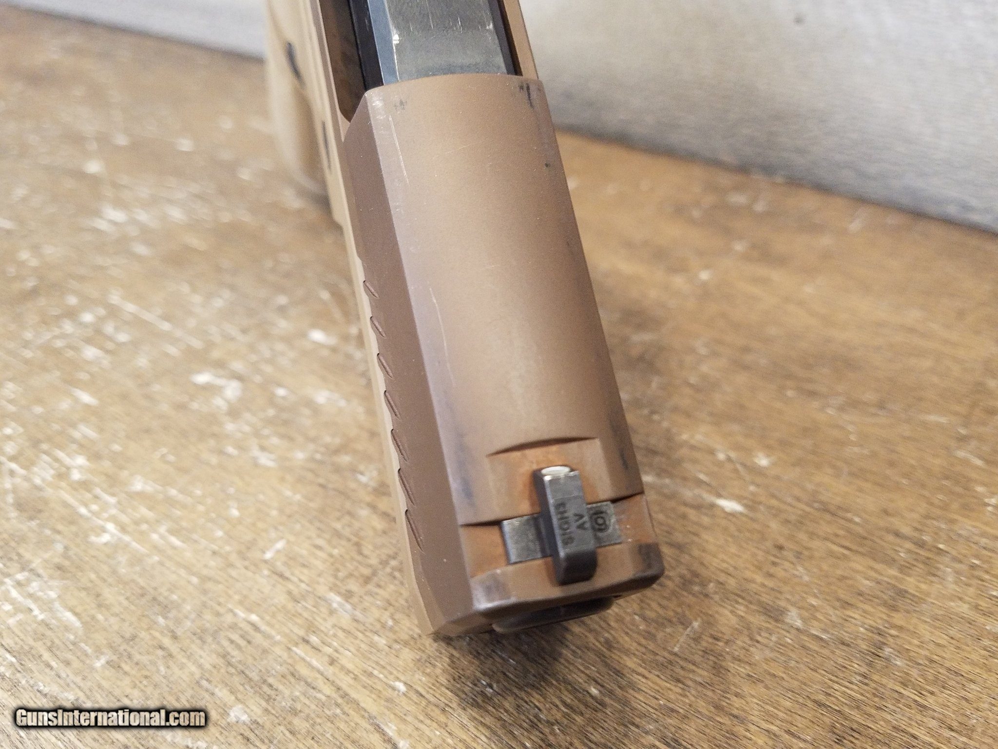 Description: Guns Listing ID: 576391 Sig Sauer P320 M18 carry pistol is based on the US Military M18 model. It features an optic-ready coyote PVD slide with a removable night sight plate compatible with Romeo1PRO and Delta-point PRO optics. The M18 also utilizes a carry length coyote grip module, ambi-manual safety, and a striker fire action with a short tactile reset. It includes one 17-round and two 21-round magazines. Seller Description: The M18 was recently issued to all branches of the U.S. Military and was chosen as the official sidearm of the U.S. Marine Corps. The P320-M18 is the commercial version that brings the same unprecedented accuracy, extreme reliability and unmatched durability the military demands. The P320-M18 comes standard with SIGLITE night sights and a removable night sight rear plate. The slide is optic ready and directly compatible with the ROMEO1 PRO. The slide and grip module are the same coyote tan as the military version, and it includes (1) 17 round magazine and (2) 21 round magazines. The P320-M18...chosen by the U.S. Marine Corps and the U.S Military, now available to you for the first time. This firearm is equipped with a manual safety. A manual safety – when engaged – is designed to mechanically prevent the firearm from discharging when the trigger is pressed, either intentionally or unintentionally. You should consider whether a manual safety on a handgun is right for you based on your experience level and intended use, keeping in mind best practices for safe firearms handling. It is possible for the trigger to be unintentionally pressed even under normal handling circumstances. A manual safety is designed to augment, not replace, safe firearm handling practices. You are responsible to protect against unintentional trigger movement while carrying any firearm. Even if you elect to purchase a pistol equipped with a manual safety, you must ensure that the trigger is not contacted in any circumstance other than when you intend to fire the pistol, particularly if you elect to carry your pistol with a round in the chamber. If you have a round in the chamber and the trigger is pressed to the rear, the pistol will fire, absent an engaged manual safety. CONDITION: Condition is determined as visible with the naked eye. We have not used a bore scope or any other special tools. If you have a specific question that I have not covered, please feel free to contact me. I have done my best to capture any visible marks or imperfections on the photos. • Barrel and Action Finish: Fair (See photos of wear on slide) • Grip Finish: Good • Barrel: Good • Sights: Good • Magazines: Very Good (1) 17 Round and (2) 21 Round magazines included • Box: Good • Overall: Good SOLD Manufacturer: SIG SAUER Model: P320 M18 Caliber Info: 9MM LUGER (9X19 PARA) Condition: Used - Non-Certified Barrels: 3.9" BARREL Action: STRIKER FIRED Finish: FLAT DARK EARTH Weight: 1.8 LBS. |