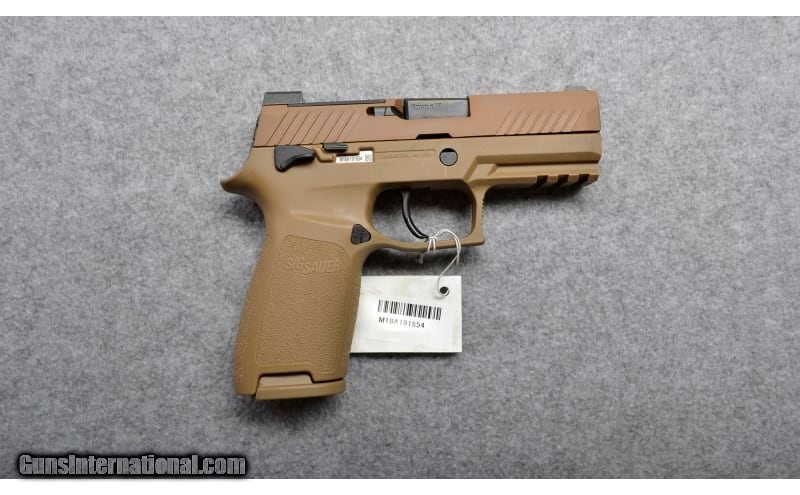 Description: Pre-owned SIG Sauer P320 M18 chambered in 9mm, 3.9" barrel, modular polymer grips, ambi manual safety, optic ready slide, M1913 Picatinny rail, Coyote Tan PVD finish. 9mm Luger SOLD Metal Condition: Excellent Condition Bore Condition: Bright and shiny with excellent rifling Barrels: 3.9 inches Weight: 28.1 Oz. Sights: SIGLITE sights w/removable night sight rear plate Item Location: Springfield, OR |