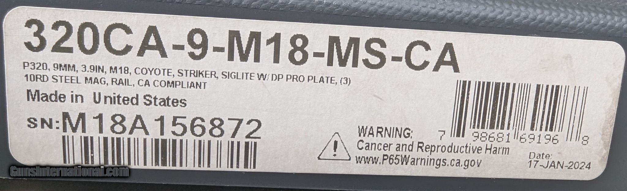 SIG SAUER P320-M18 CALIFORNIA 9MM LUGER (9X19 PARA)