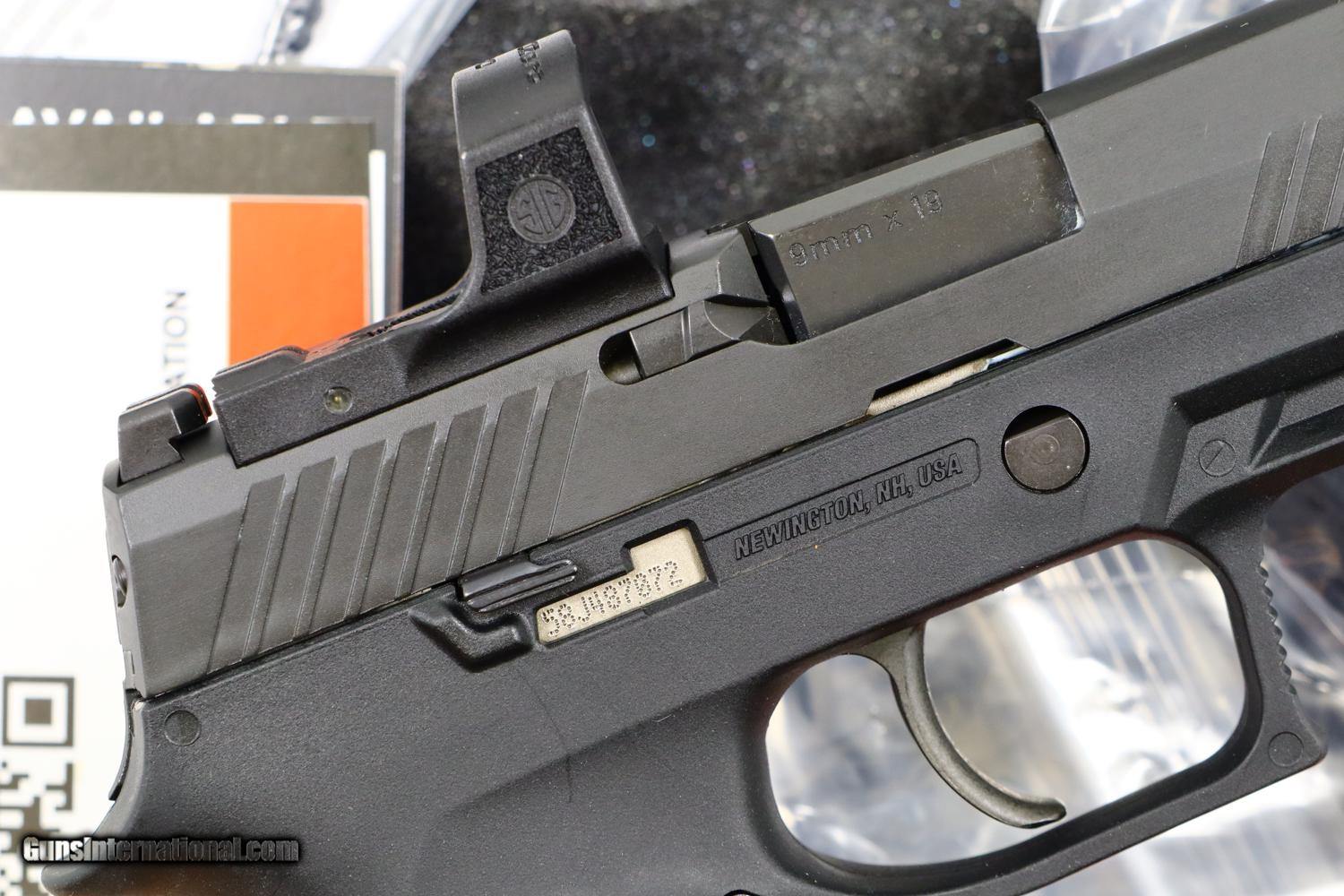 Description: Synopsis: Sig Sauer, P320, RXZP Compact, 58J505844, A-1908 Description: Desirable, as new in the box, SIG SAUER P320 RXZP compact with ROMEOZero-Pro 3 MOA reflex optic, white three-dot sights, textured polymer grip frame, ambidextrous slide stop/release, with two factory 15-round magazines. Also included is the factory-matching plastic hard case, manual, hang tag, paperwork, battery for the reflex sight, cable lock with keys. Condition: Near new in factory matching box with all accessories including hang tag. Mirror bore. Perfect Manual Mechanics. ~~Insured shipping fee of $45; most packages shipped using FedEx 2nd Day.~~ SOLD Manufacturer: SIG Sauer Serial Number: 58J487072 Caliber Info: 9mm |